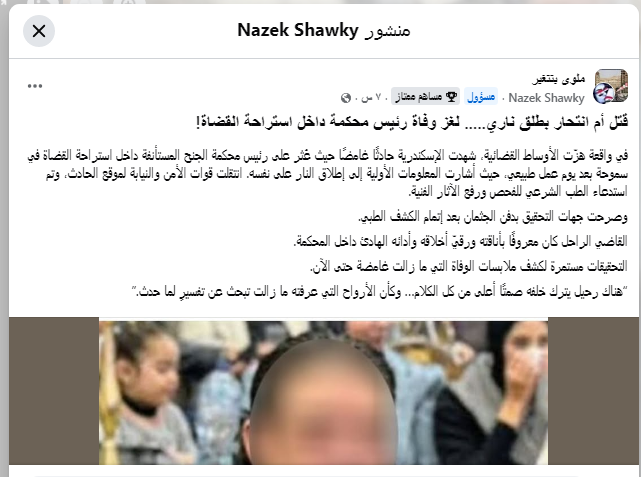الحادثة، التي انتشرت تحت عنوان انتحار قاضي الإسكندرية، أعادت طرح تساؤل مهم: