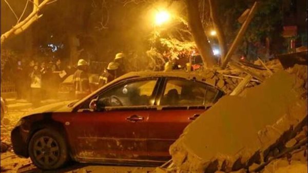 شاهد بالصور | لحظة انهيار عقار بمنطقة حدائق القبة