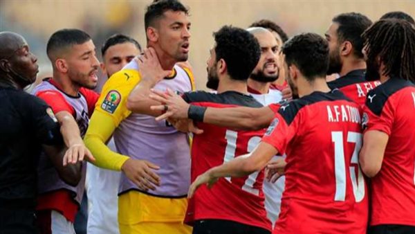مصر والمغرب مباشر نشبت مشاجرة بين مصطفى محمد لاعب منتخب مصر وأشرف حكيمي قائد منتخب المغرب بعد تدخل عنيف بينهما.