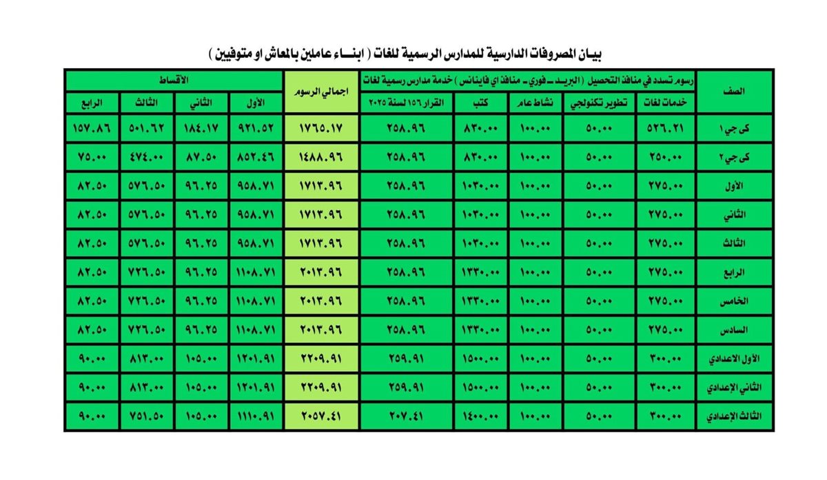 وتأتي هذه التعليمات ضمن سلسلة خطوات تنظيمية تسعى من خلالها وزارة التربية والتعليم إلى ضبط المنظومة المالية والإدارية داخل المدارس، بالتوازي مع الجهود المبذولة لتهيئة بيئة تعليمية أكثر استقرارًا وعدلًا للطلاب، وننشر لكم قيمة المصروفات المعلنة من وزارة التعليم في الصور المرفقة.