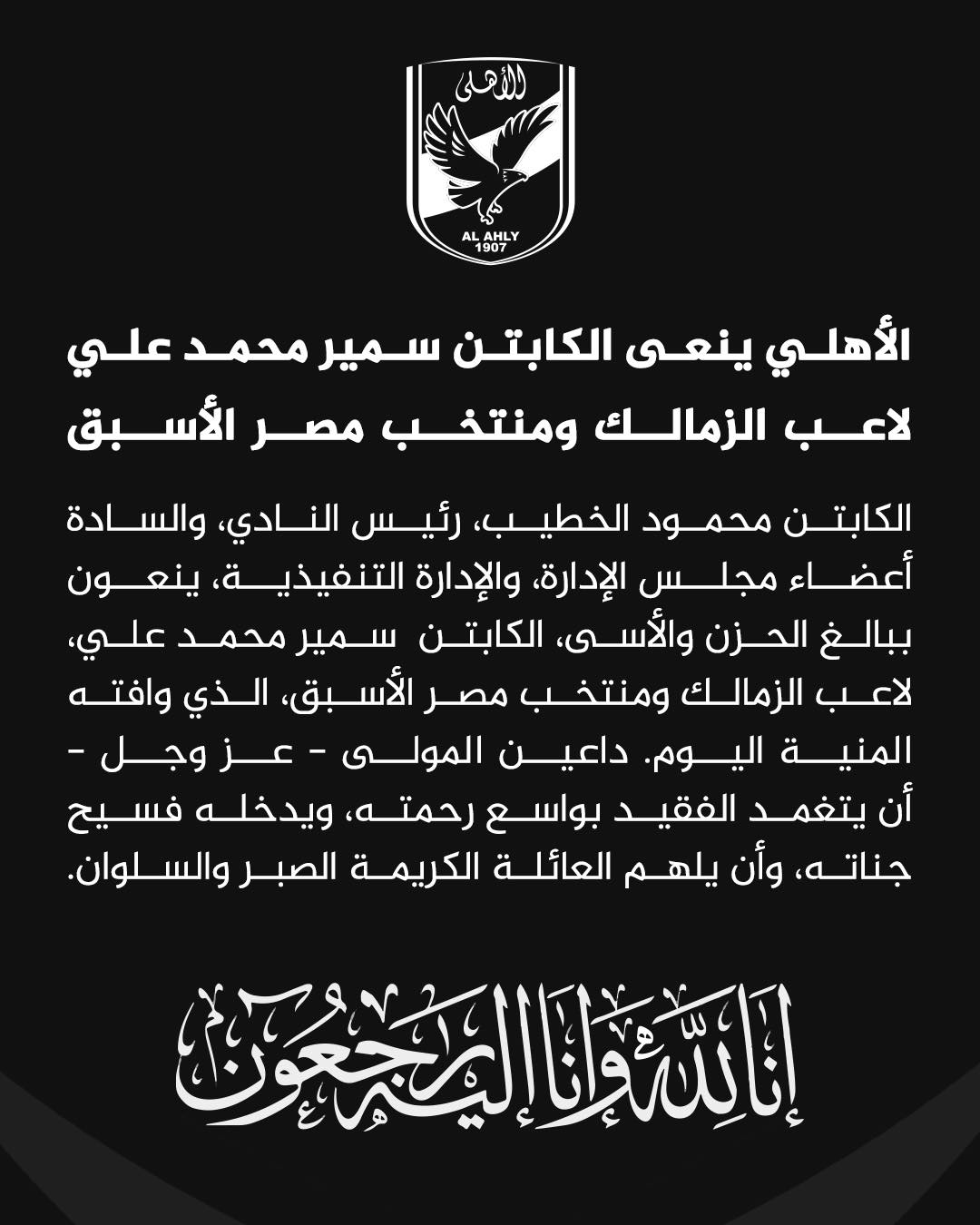 الأهلي يصدر بيانا رسميا للنعي