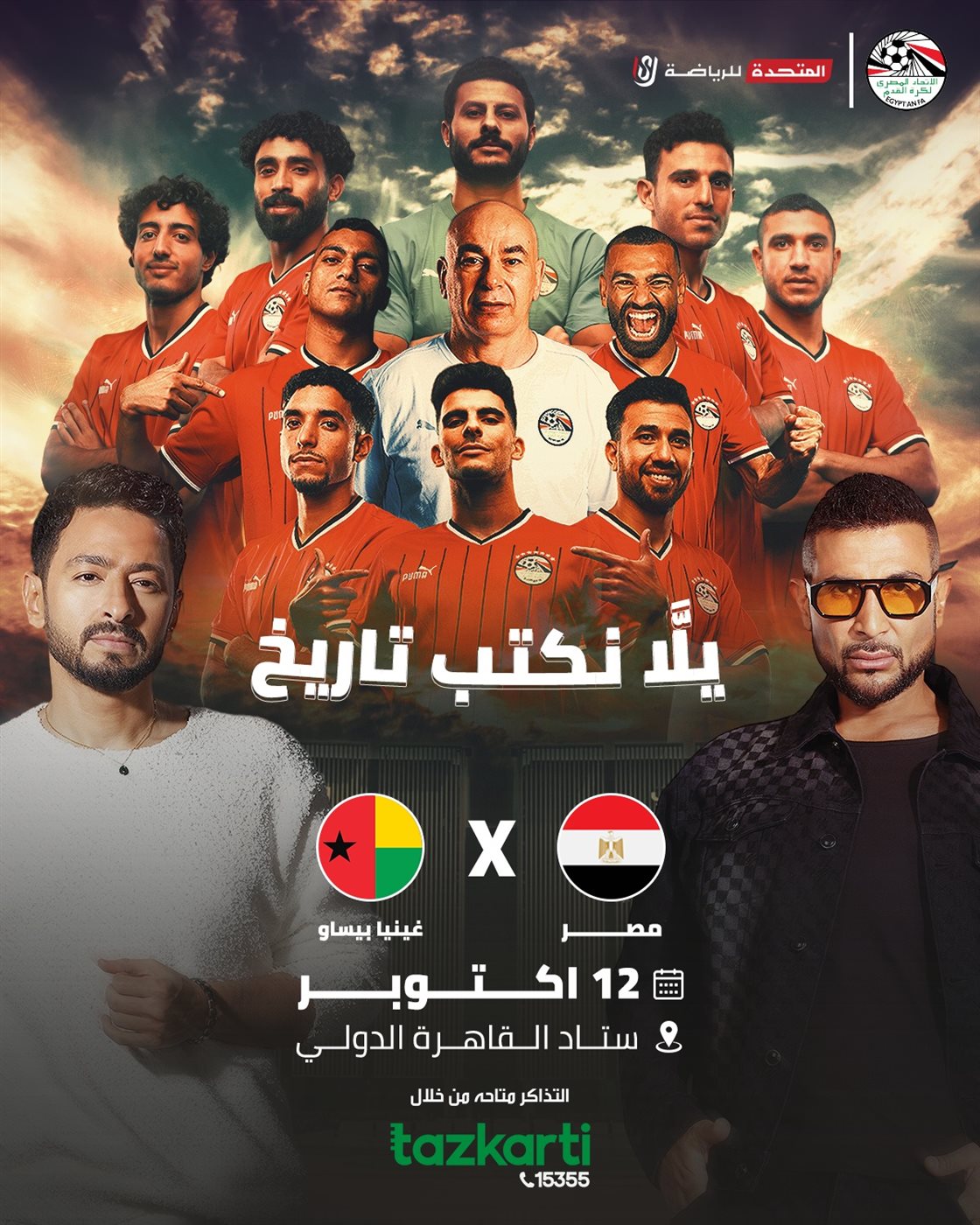 وستقام مباراة مصر وغينيا بيساو آخر منافسات التصفيات يوم الأحد المقبل الموافق 12 أكتوبر في تمام الساعة العاشرة مساء ، وذكرت المتحدة على صفحتها الرسمية بموقع فيسبوك قائلة: ""التاريخ يُكتب من جديد.. واحتفال الصعود ينتظركم".