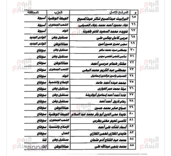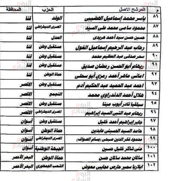 القائمة الرسمية الخاصة بمرشحي القائمة الوطنية بمحافظة الدقهلية، والتي جاءت على النحو التالي:
