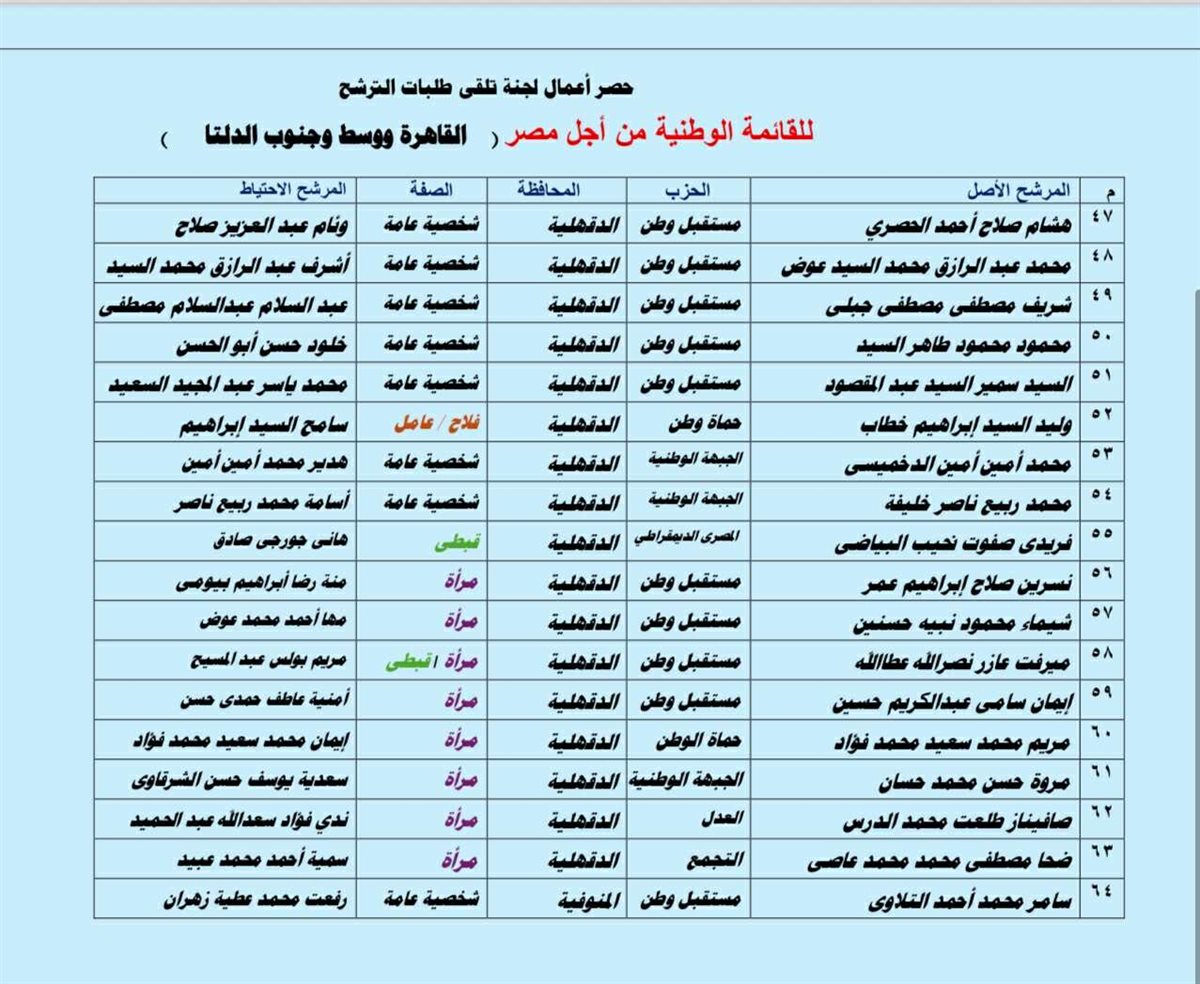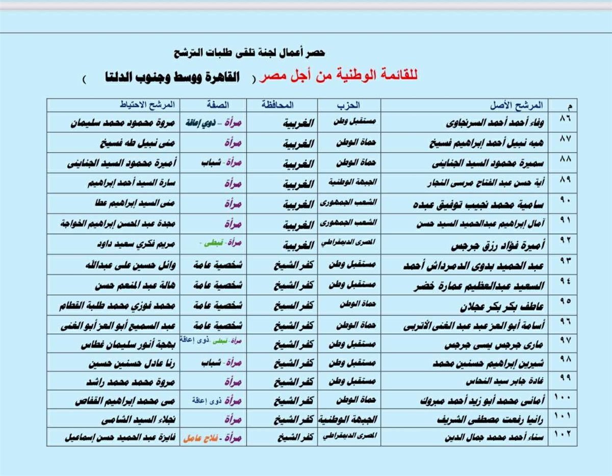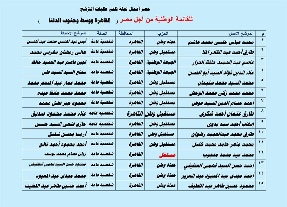 انتخابات مجلس النواب: أسماء القائمة الوطنية من أجل مصر رسميا بجميع المحافظات "مستندات"