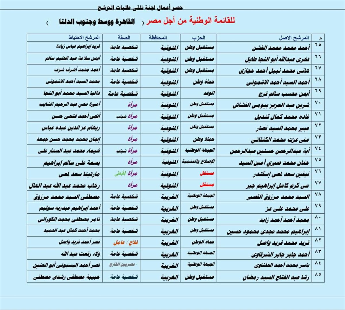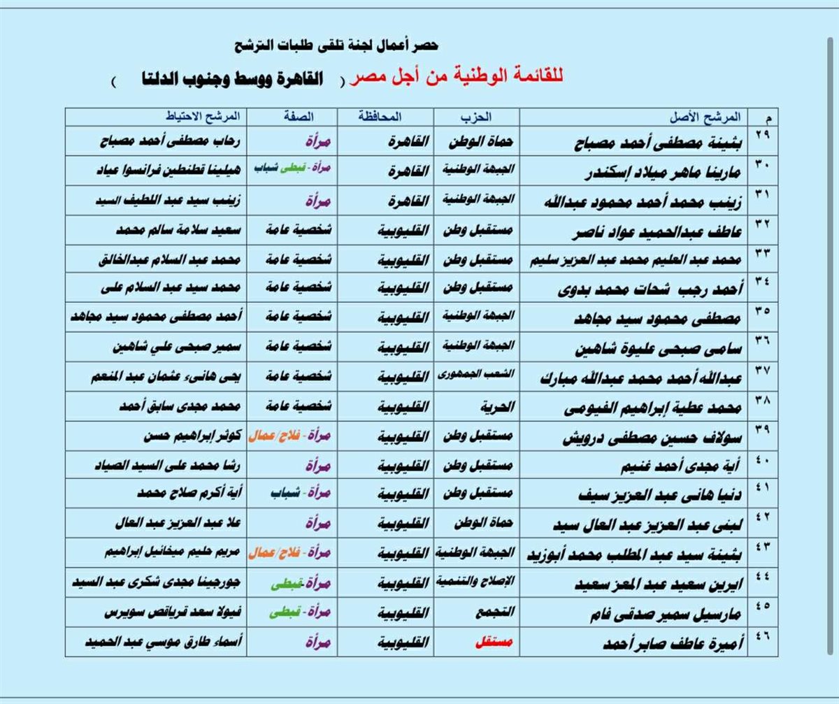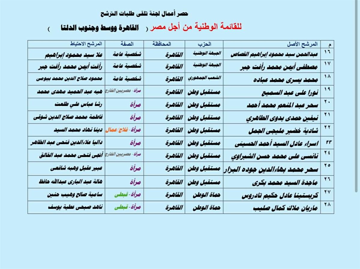 انتخابات مجلس النواب: أسماء القائمة الوطنية من أجل مصر رسميا بجميع المحافظات "مستندات"