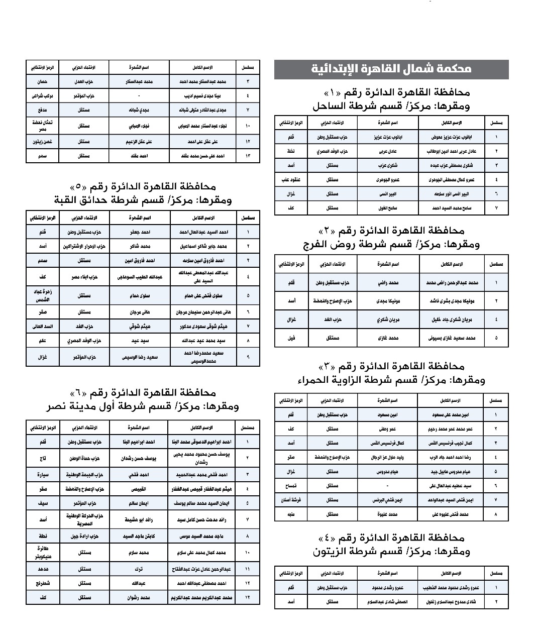 ترتيب أسماء مرشحي النظام الفردي في 143 دائرة انتخابية بالجمهورية استعدادًا لانتخابات مجلس النواب 2025