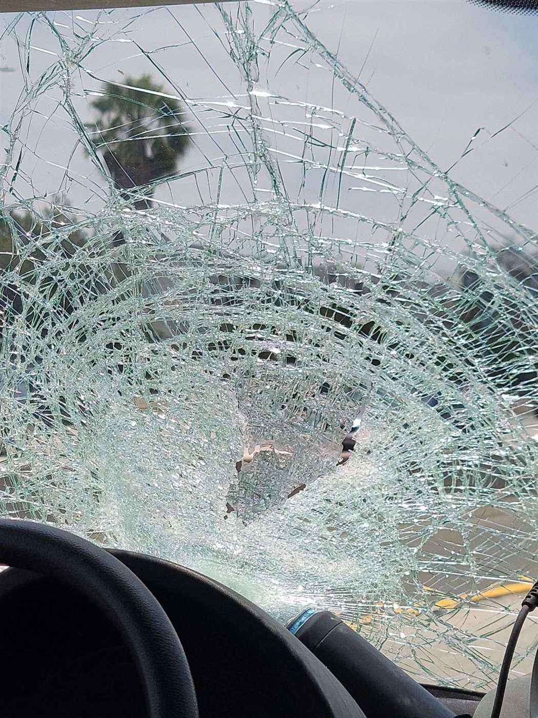 وأضافت الشرطة أن الحادث وقع أثناء تنظيم مرور المركبات على الطريق السريع رقم 5، حيث كانت وحدات مشاة البحرية الأمريكية تقوم بإطلاق ذخيرة حية فوق الطريق، ما تسبب في وقوع شظايا معدنية أدت للأضرار المذكورة.