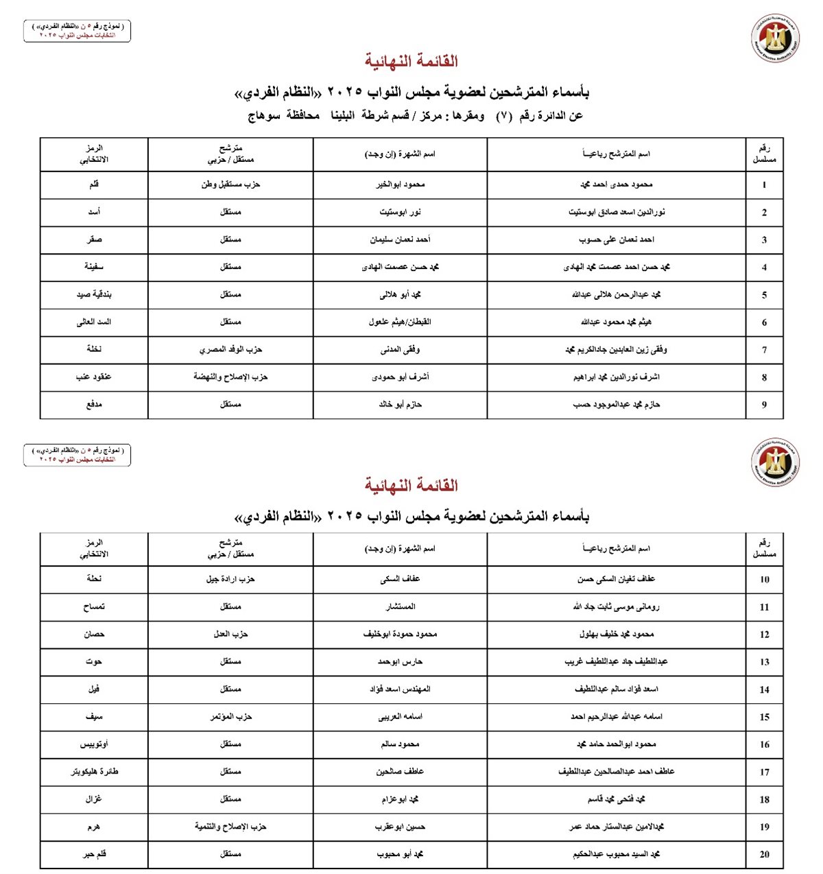 إعلان أسماء مرشحي النظام الفردي في انتخابات البرلمان 2025 بمحافظات الصعيد بعد انتهاء الطعون رسمياً
