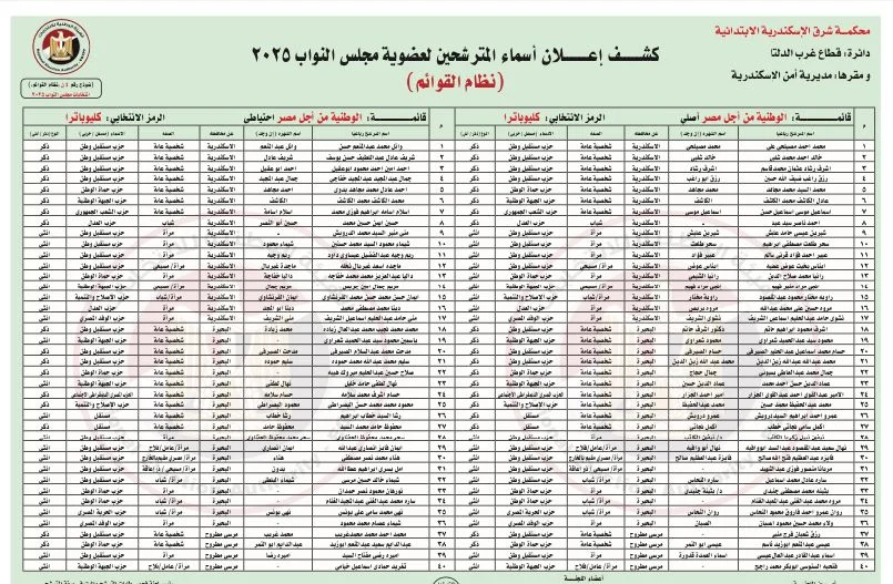 أسماء المرشحين بالقائمة النهائية من أجل مصر