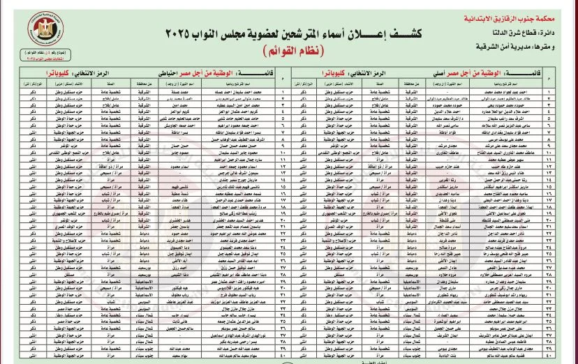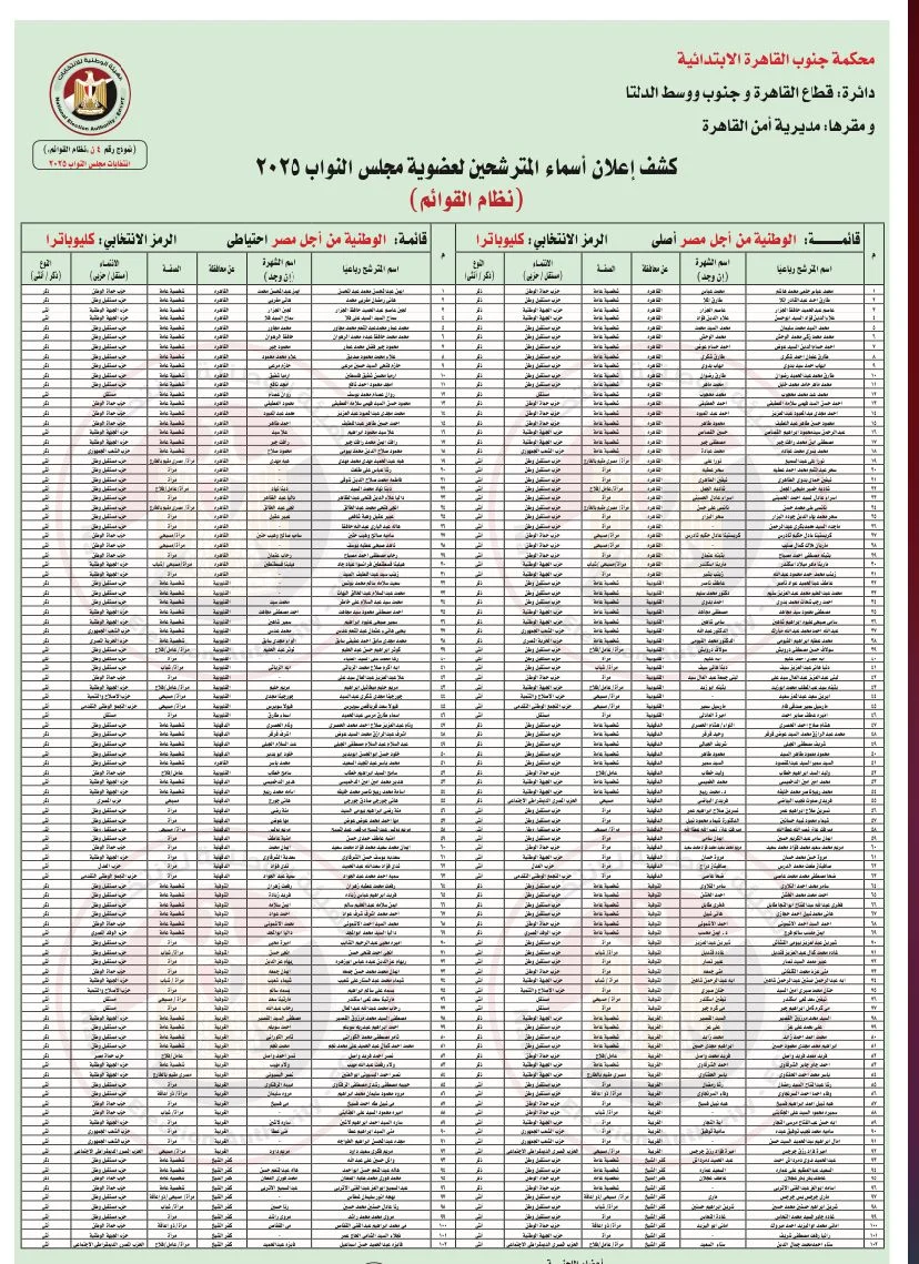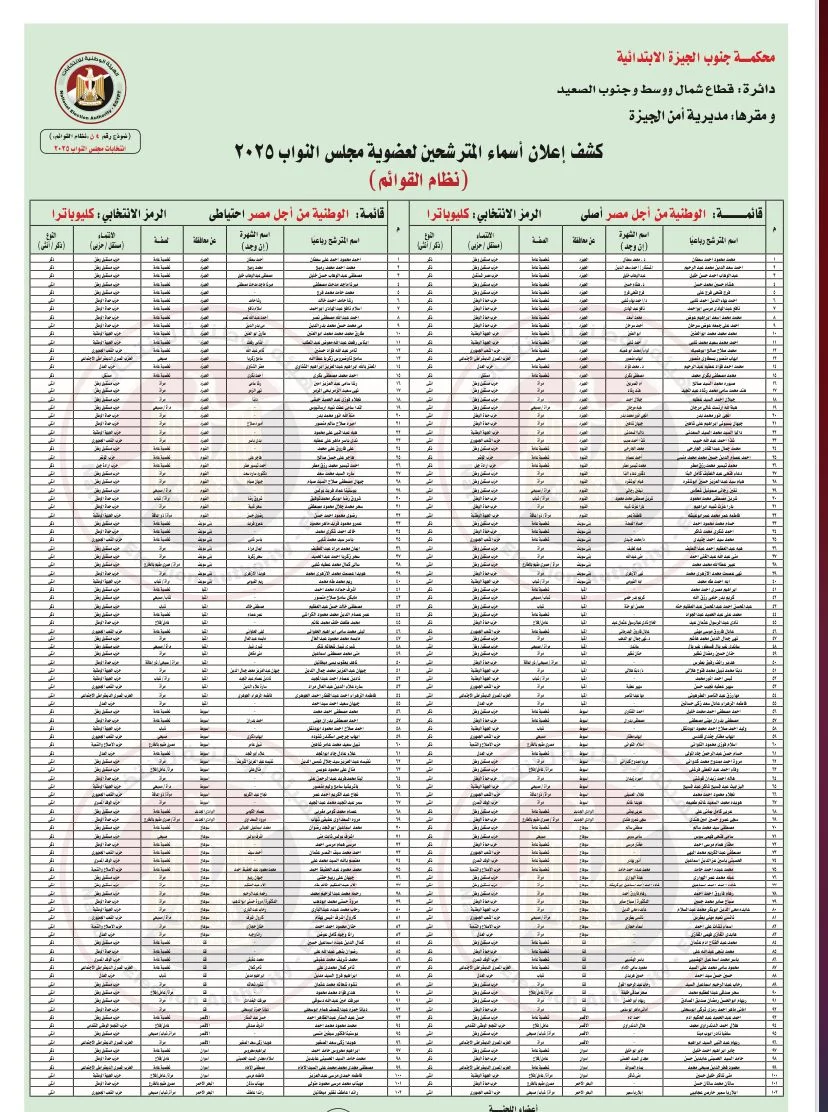 انتخابات مجلس النواب: أسماء المرشحين النهائية بالقائمة الوطنية من أجل مصر بجميع المحافظات والمنسحبين