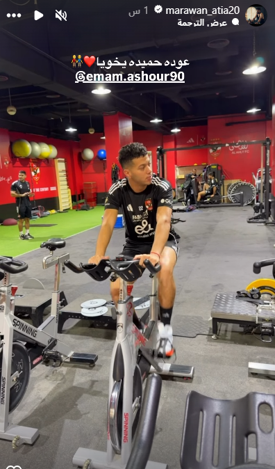 شارك مروان عطية، نجم خط وسط النادي الأهلي، متابعيه على مواقع التواصل بصورة جديدة لزميله إمام عاشور داخل صالة الجيم بالنادي، في أول ظهور له بعد تعافيه من إصابته من فيروس A، معلقًا عليها بعبارة ودية : "عودة حميدة يا أخويا"، في إشارة لاقتراب اللاعب من استئناف نشاطه مع الفريق.