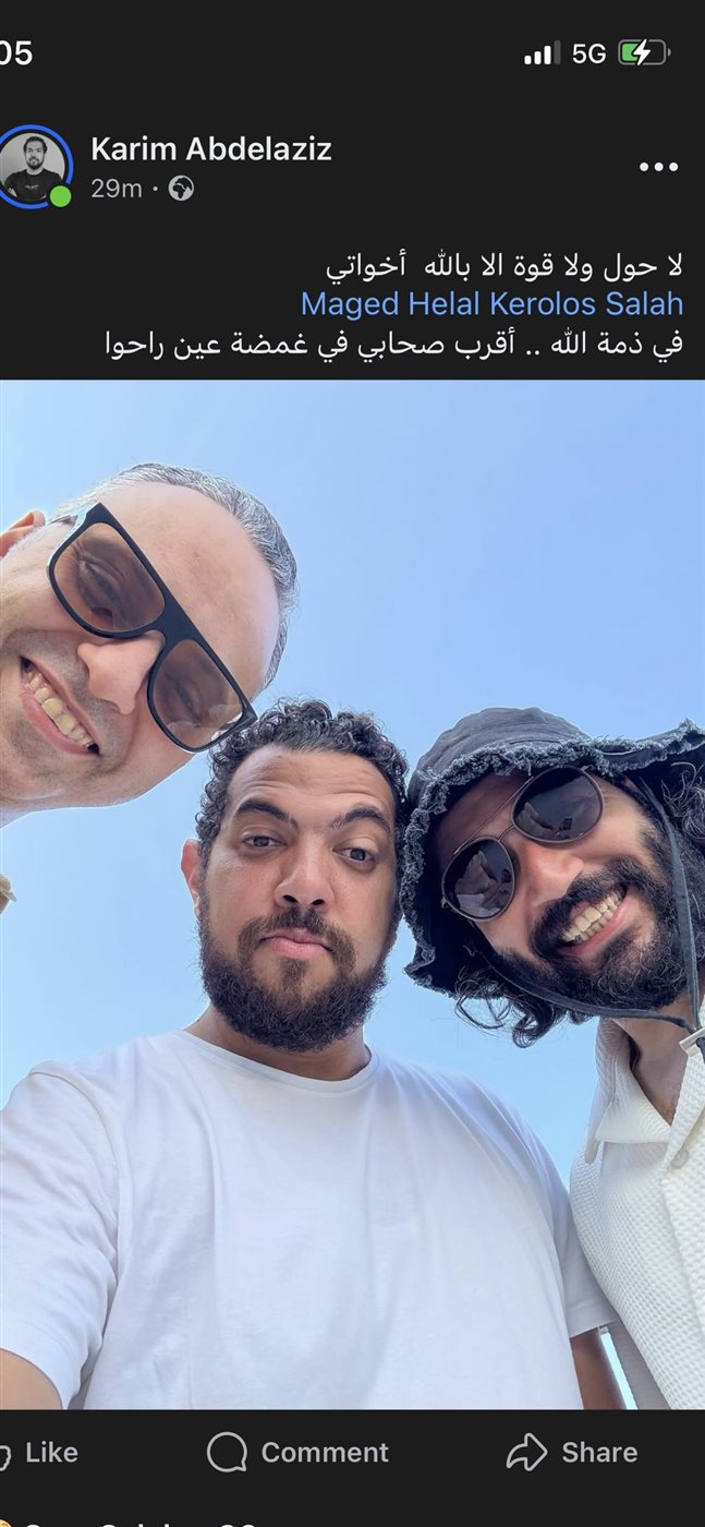 وأكد صديقهما المصور كريم عبد العزيز في منشور عبر فيسبوك قائلاً: «لا حول ولا قوة إلا بالله، إخواتي ماجد هلال وكيرلس صلاح في ذمة الله، أقرب صحابي في غمضة عين راحوا».