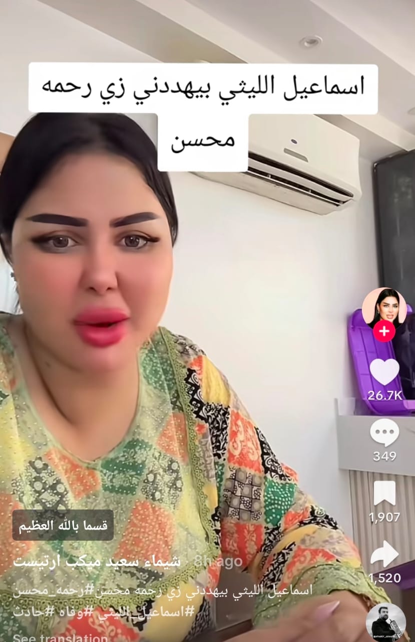 نشرت طليقة إسماعيل الليثي فيديو عبر تطبيق تيك توك بعنوان “إسماعيل الليثي بيهددني زى رحمة محسن”، وقالت فيه بصراحة: "اتفو على الرجالة، لان الرجالة خلاص مبقتش موجودة حسبي الله ونعم الوكيل"، مؤكدة أن الأزمة التي تمر بها رحمة محسن ليست بعيدة عن واقع كثير من النساء اللواتي تعرضن للتهديد والابتزاز.