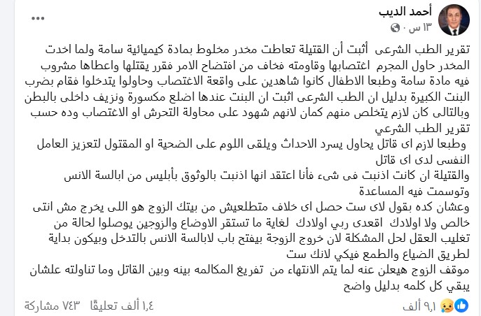 كما نشر المستشار أحمد الديب نص أقوال الزوج بتحقيق النيابة العامة وفقا للرابط المرفق اسفل: