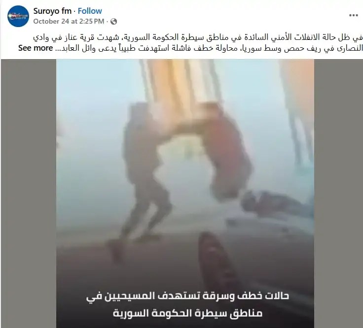 على صعيد آخر، نجحت الجهات الأمنية السورية في تحرير عائلة مسيحية كانت قد تعرضت للاختطاف أثناء توجهها إلى لبنان، بعد أن طالبت العصابة المختطفة بفدية مالية للإفراج عنهم. ويؤكد هذا النجاح الأمني أهمية تدخل السلطات بشكل سريع لحماية المسيحيين وتأمين مناطقهم من أي اعتداءات أو عمليات ابتزاز.
