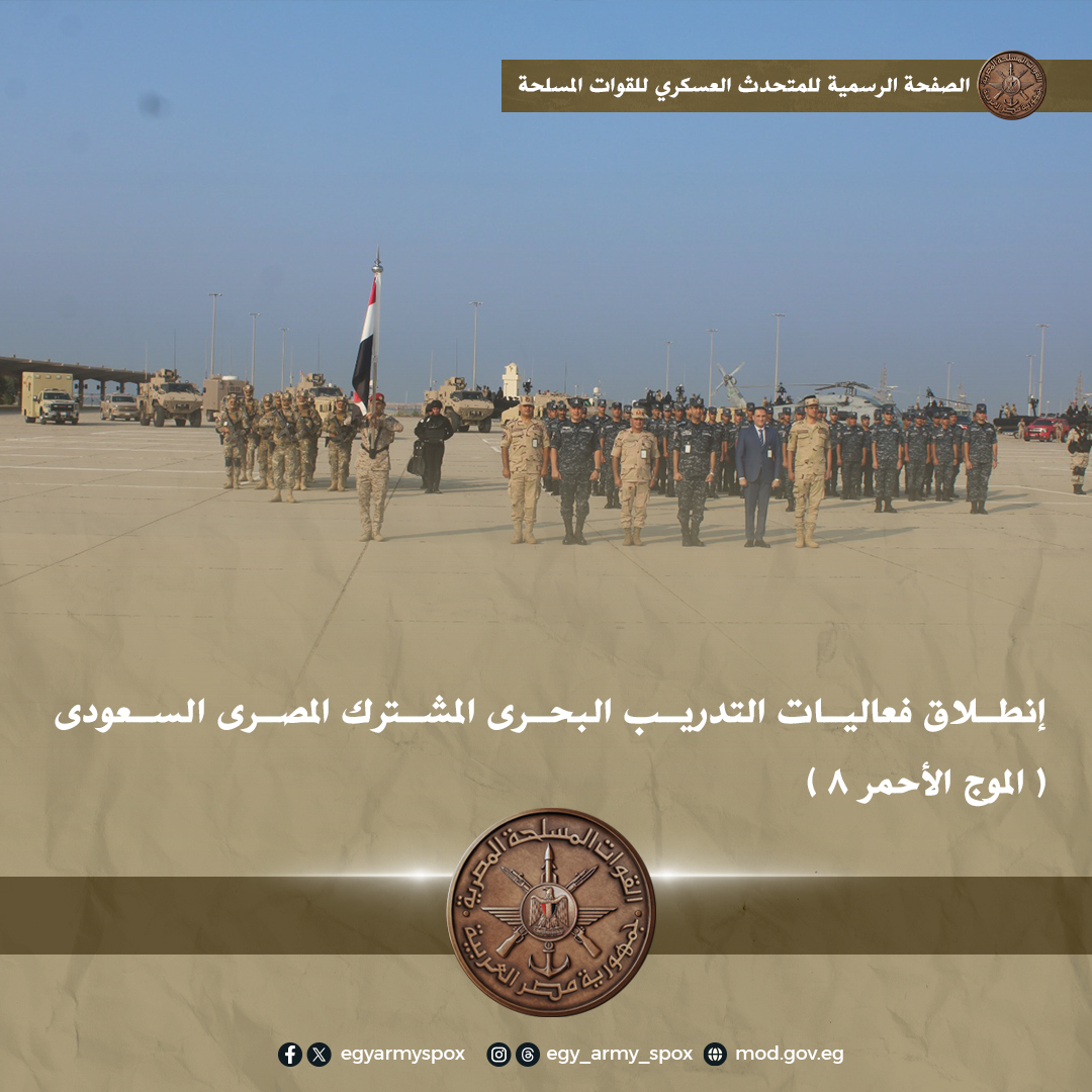 أعلن المتحدث العسكري للقوات المسلحة المصرية، في بيان رسمي نشر اليوم الثلاثاء الموافق 11 نوفمبر عبر الصفحة الرسمية، انطلاق فعاليات التدريب البحري المشترك المصري السعودي "الموج الأحمر 8"، والذي تُقام مرحلته الحالية في المملكة العربية السعودية بمشاركة عناصر من القوات البحرية لكل من مصر والسعودية والأردن والسودان واليمن وجيبوتي، ويستمر التدريب لعدة أيام.