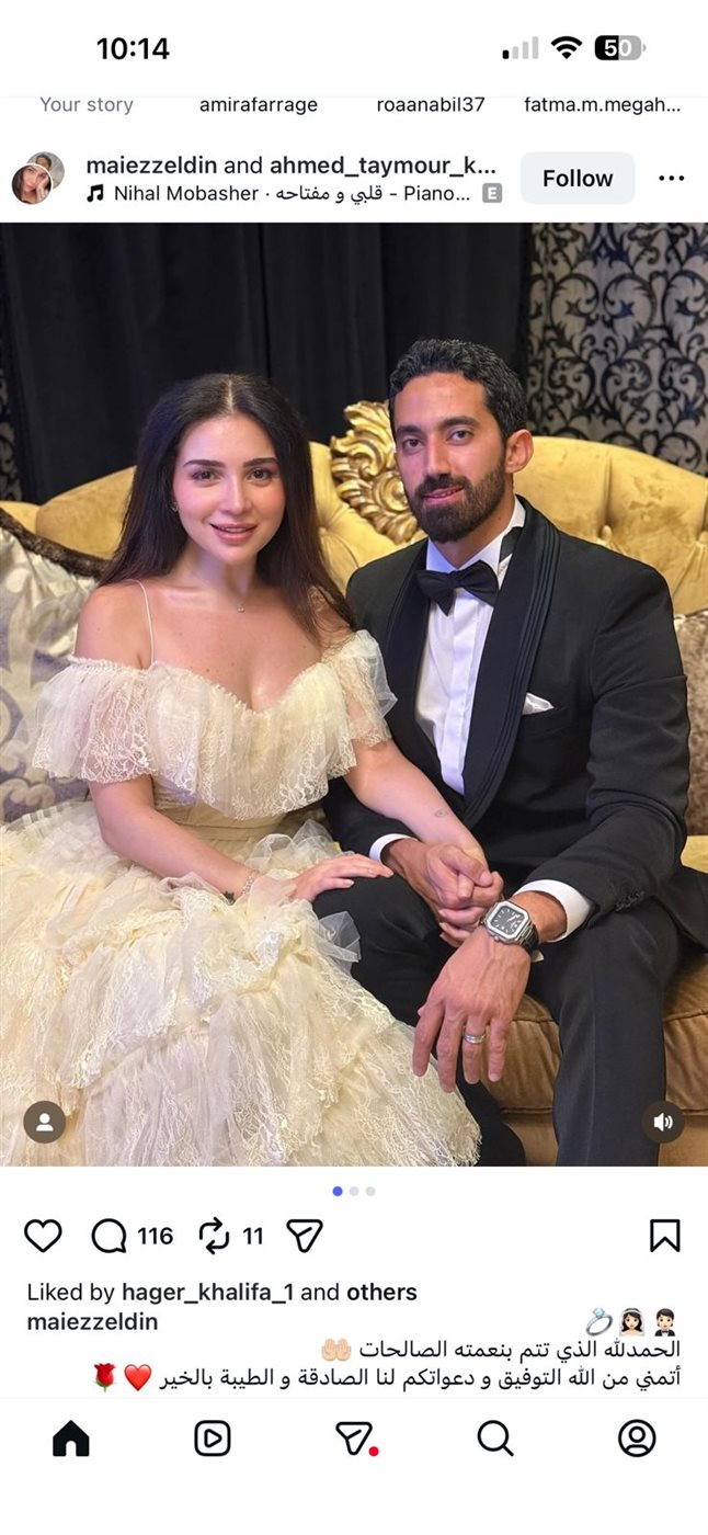زواج مي عز الدين من مدرب اللياقة أحمد تيمور يمثل مفاجأة سارة لجمهورها الذي تابعها لسنوات وهي تفضل الخصوصية في حياتها الشخصية.