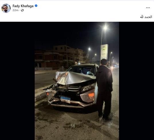 شارك فادي خفاجة جمهوره صورة لسيارته عقب الحادث عبر حسابه الرسمي على "فيسبوك"، حيث بدت السيارة متضررة بشكل واضح نتيجة الاصطدام العنيف. وعلق فادي خفاجة بكلمة واحدة فقط: "الحمدلله"، في إشارة إلى نجاته دون إصابات خطيرة.