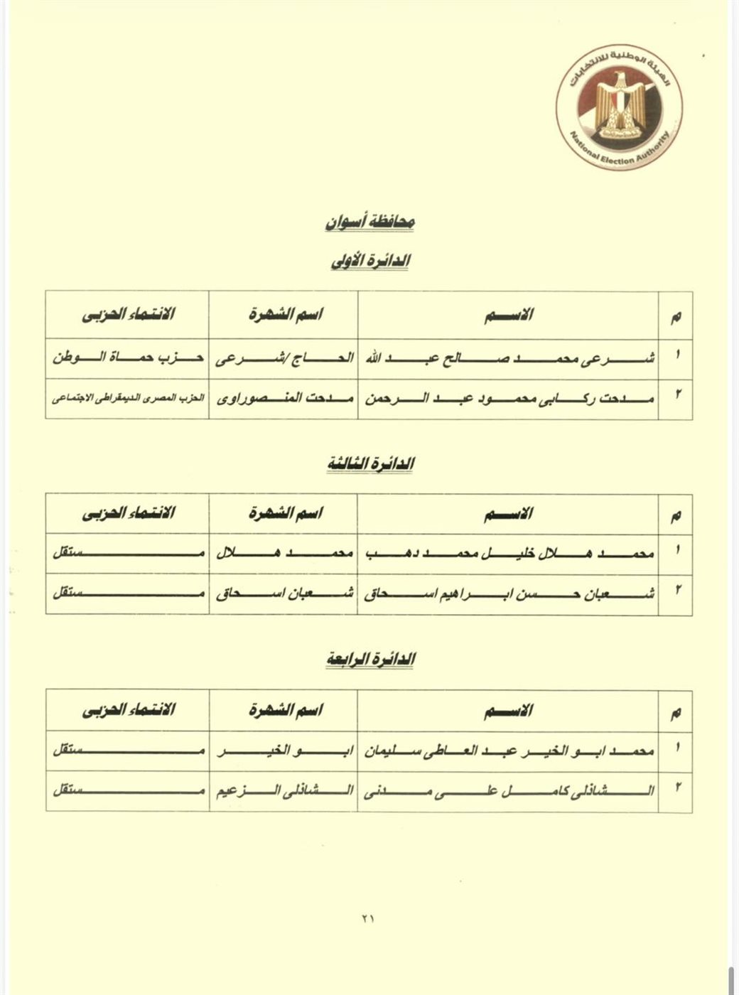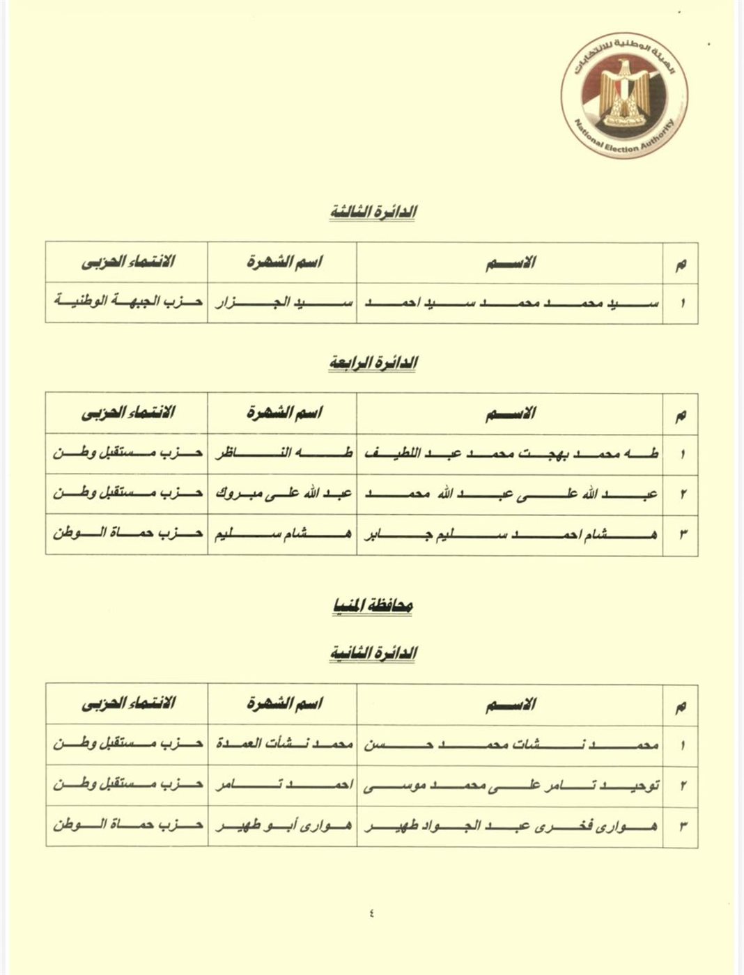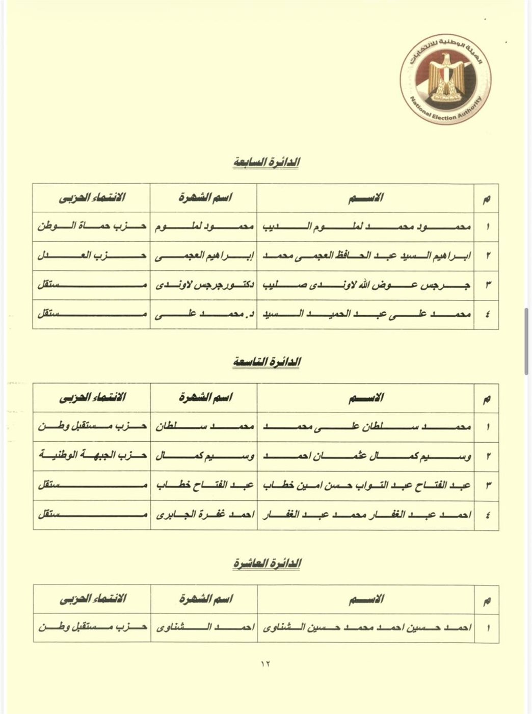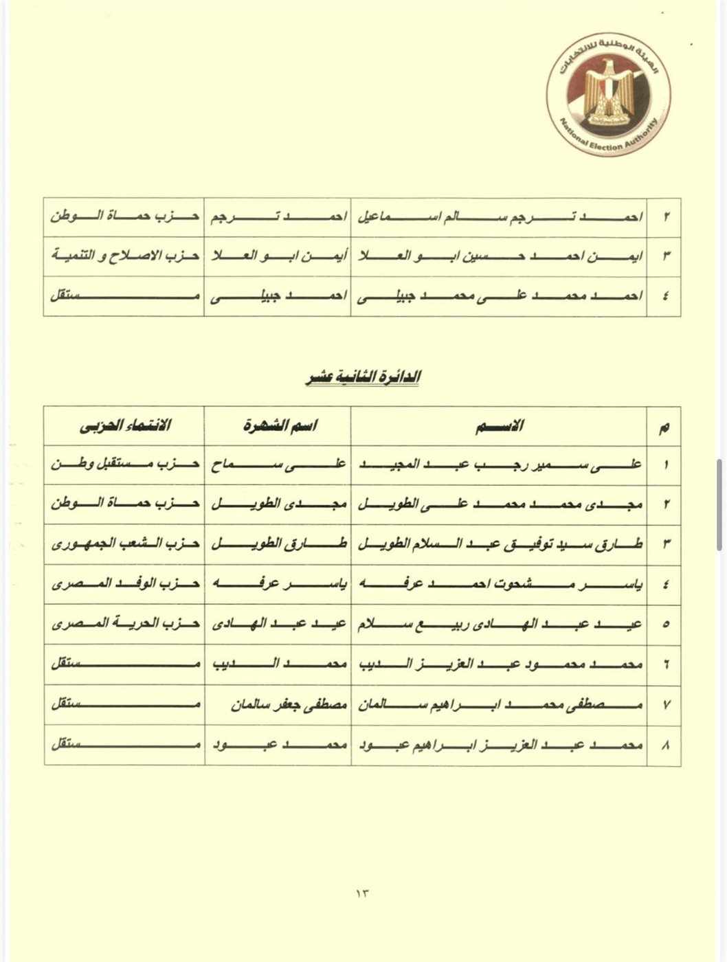 وبحسب ما أعلنه القاضي حاتم بدوي، رئيس الهيئة الوطنية للانتخابات، فقد استعرض أسماء الفائزين بالانتخابات فردي وقائمة في عدد من الدوائر بمحافظات المرحلة الاولى، كما استعرض رئيس الهيئة تفاصيل جولات الإعادة وايضا الجدول الزمني لها، وننشر لكم في السطور التالية بالصور المرفقة أسماء المرشحين الذين تم حسم مقاعدهم تحت قبة البرلمان، بالاضافة إلى ما سيحدث في جولات الإعادة.