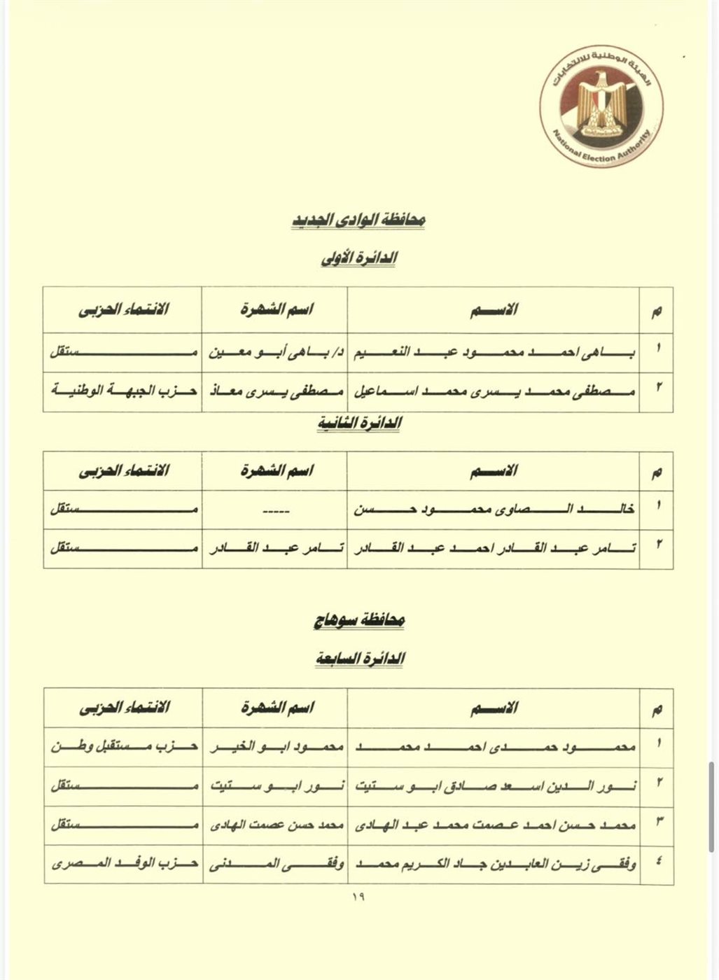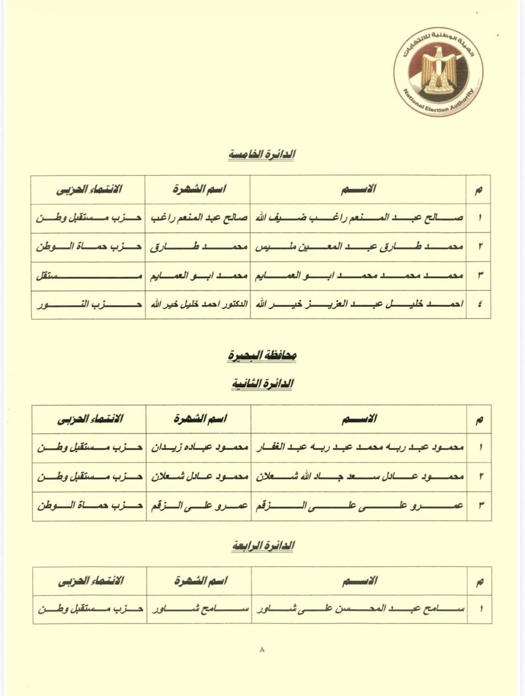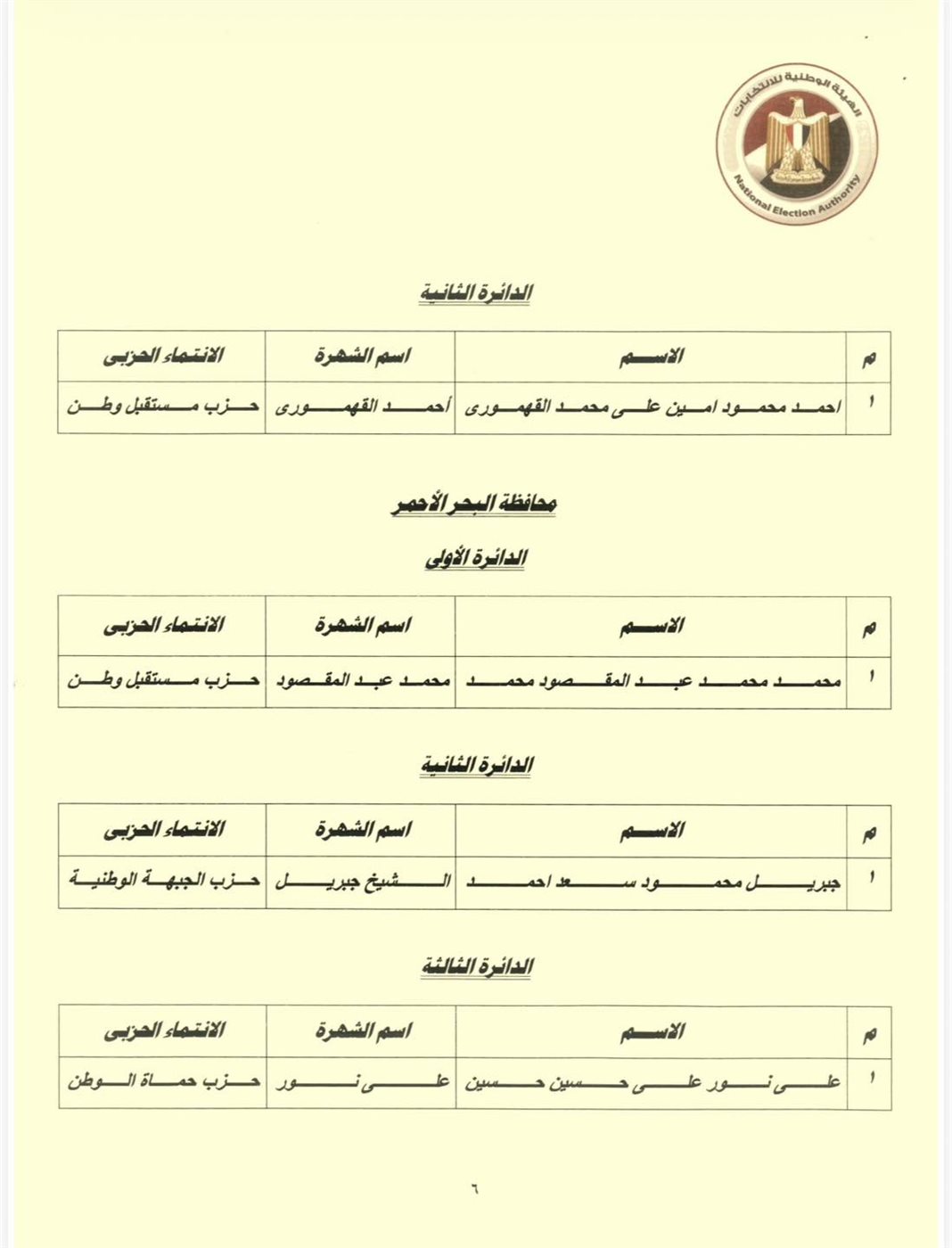 أسماء الفائزين بانتخابات النواب بجميع محافظات المرحلة الأولى فردي وقائمة