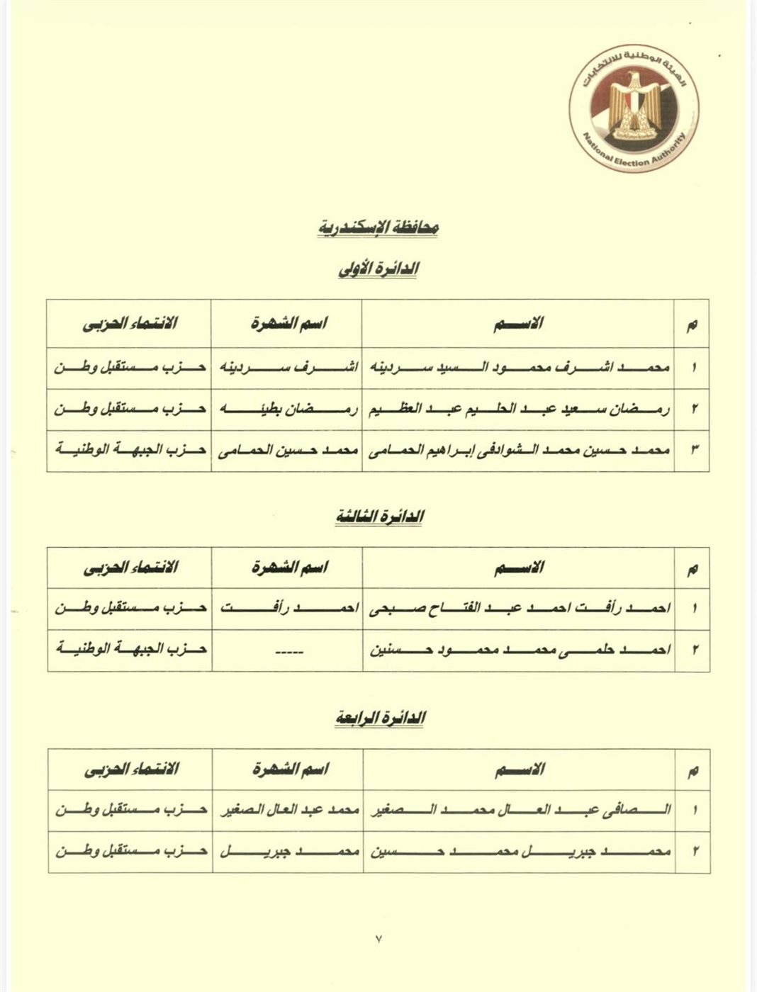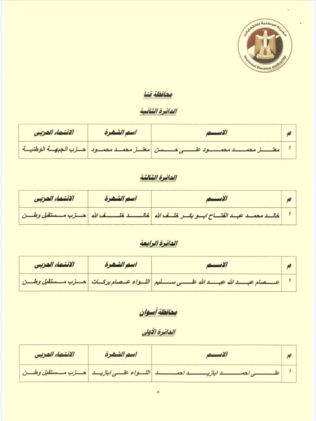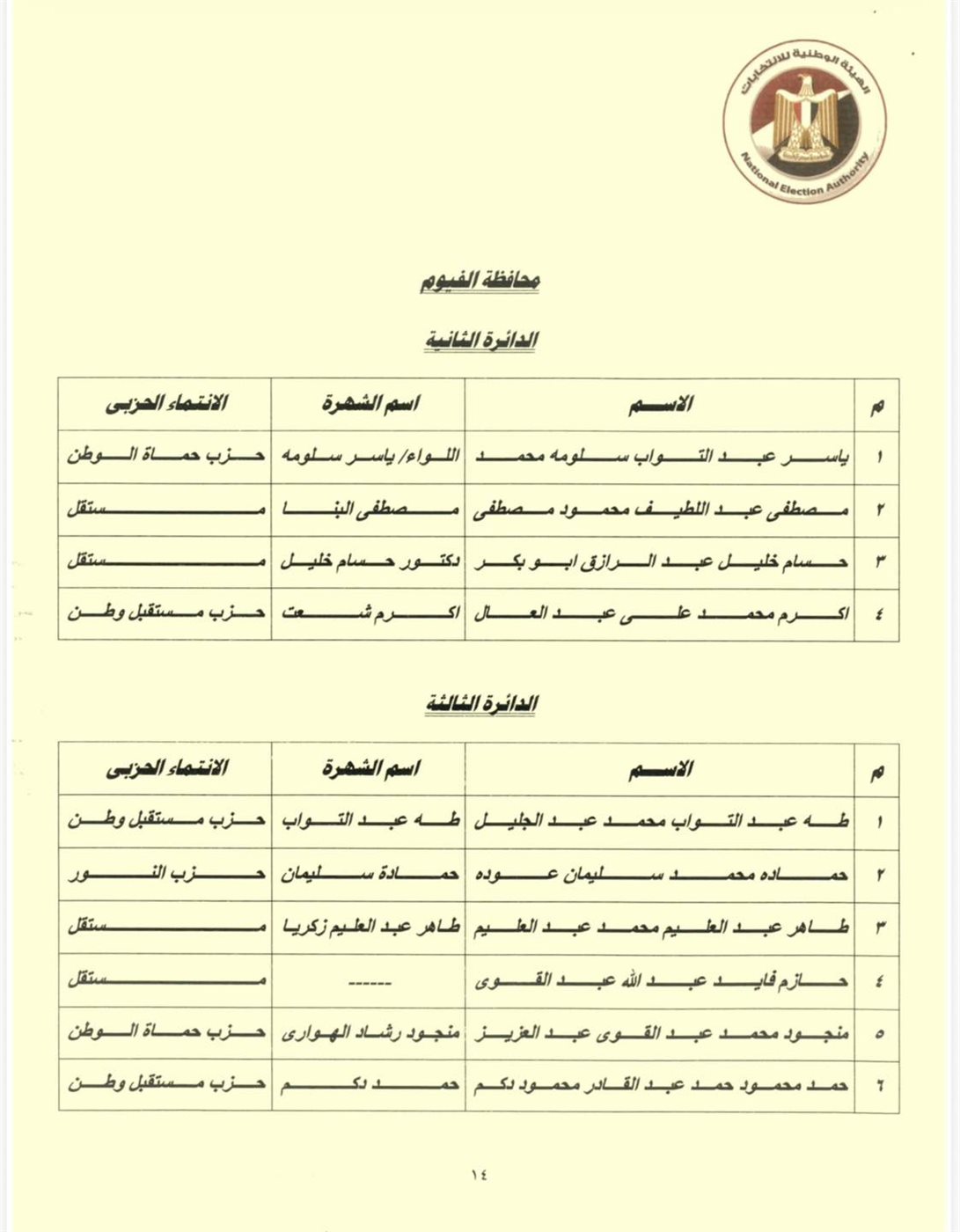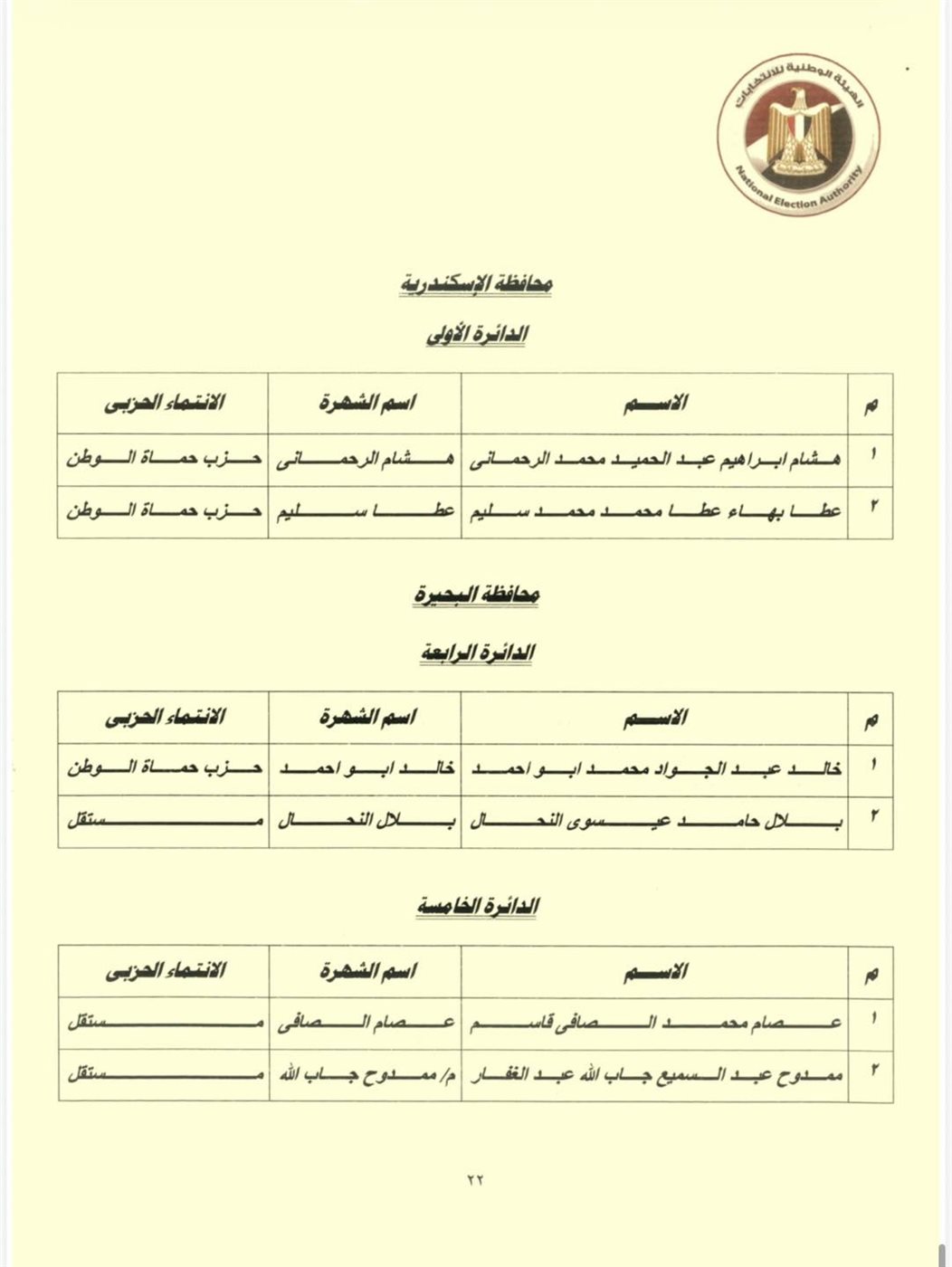 أسماء الفائزين بانتخابات النواب بجميع محافظات المرحلة الأولى فردي وقائمة