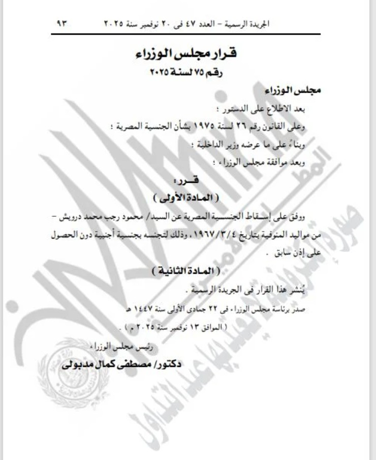 أصدر الدكتور مصطفى مدبولي ثلاثة قرارات متتالية بإسقاط الجنسية المصرية عن المواطنين: