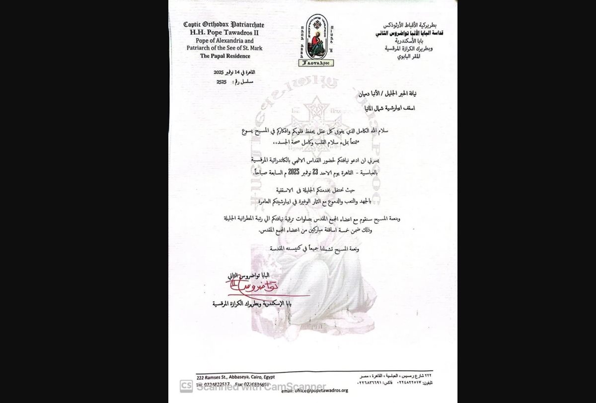 - تمت دعوته رسميًا لحضور القداس لنيل رتبة المطرانية.