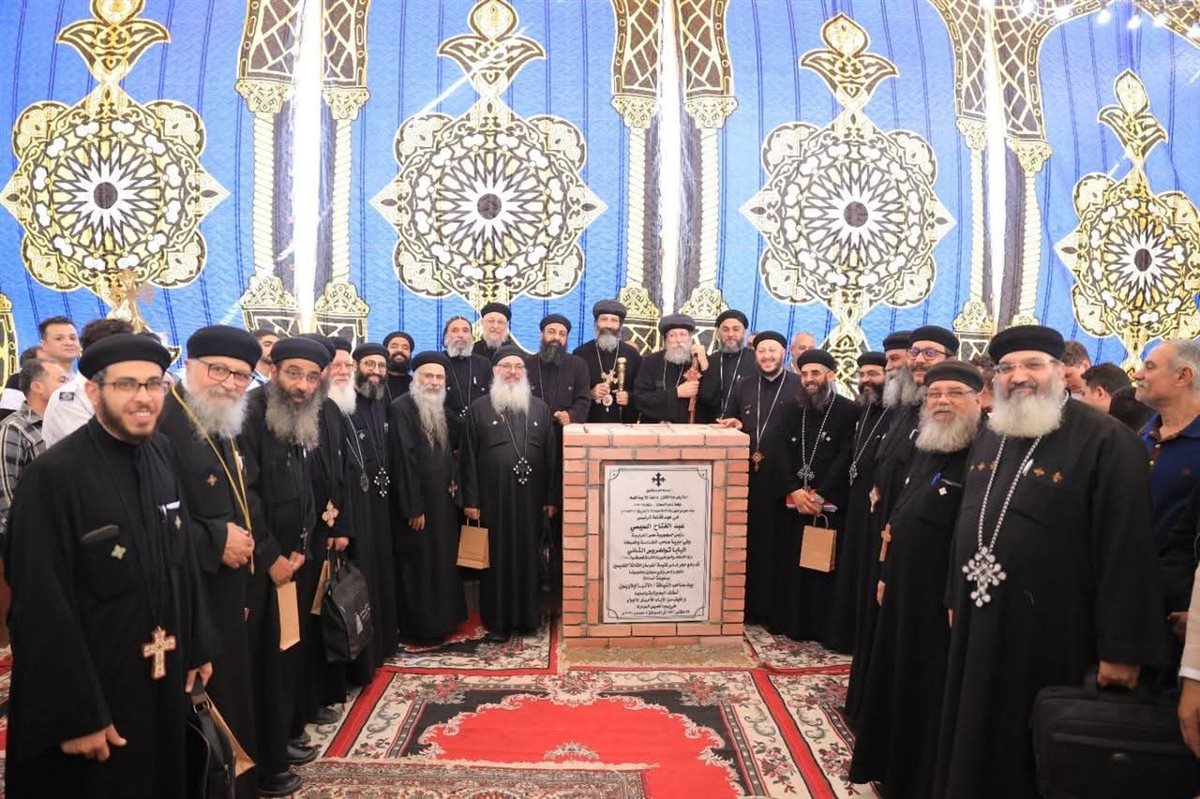 مراسم وضع حجر أساس كنيسة الفرسان الثلاثة تشمل وثائق ملكية الأرض والصور الرسمية للأساقفة