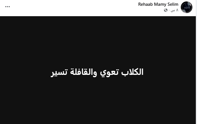 وفي أول تعليق لها منذ الواقعة، استخدمت رحاب حسابها الشخصي على موقع التواصل الاجتماعي "فيس بوك" لتوجيه رسالة مقتضبة، كتبت فيها: "الكلاب تعوي والقافلة تسير"، في إشارة إلى استمرار حياتها رغم الانتقادات والشائعات التي تداولها البعض حول دورها في الحادث.