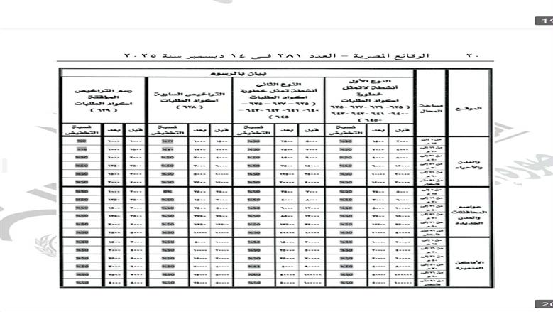 مساحة من 1 إلى 15 متر للمحال غير الخطرة: قبل القرار 20 ألف جنيه، بعد التخفيض 10 آلاف جنيه.