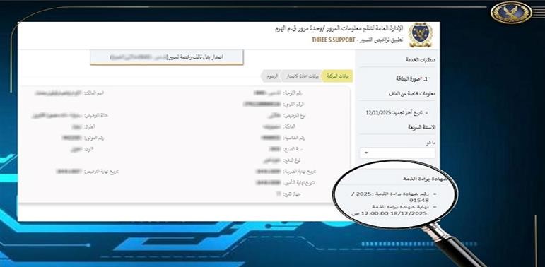 وفي التوقيت نفسه، يتم اعتماد شهادة براءة الذمة إلكترونيًا دون إصدار أي مستند ورقي، لتصبح متاحة تلقائيًا أمام جميع الجهات المرتبطة بالنظام، بما يشمل وحدات التراخيص الثابتة، والوحدات المتنقلة، ومنصة مرور مصر، إضافة إلى المنافذ الجمركية والحدودية.
