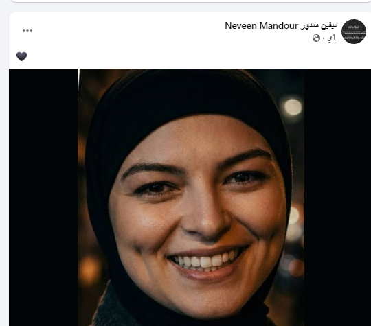 آخر صورة للفنانة نيفين مندور قبل وفاتها بساعات بالحجاب وقلب أسود تودع محبيها