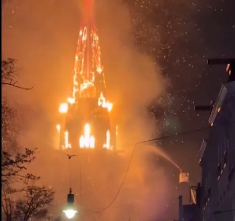 وساعدت طبيعة المبنى الخشبية القديمة والجافة على انتشار النيران بسرعة كبيرة، قبل أن تمتد إلى البرج المدبب للكنيسة، في مشهد مأساوي انتهى بانهيار البرج بالكامل وسقوطه داخل محيط المبنى، وهي اللحظة التي وثقتها مقاطع مصورة جرى تداولها على نطاق واسع وأثارت ذهول المتابعين.