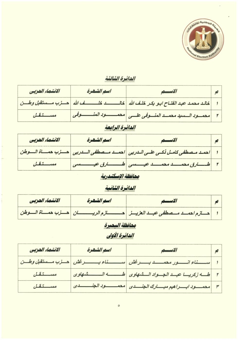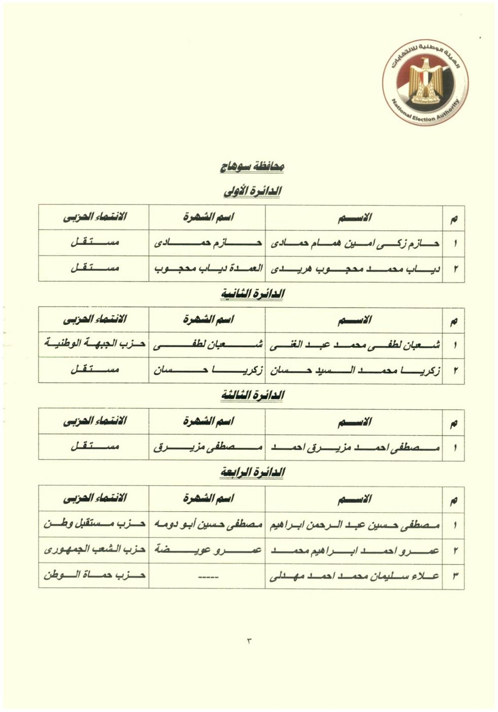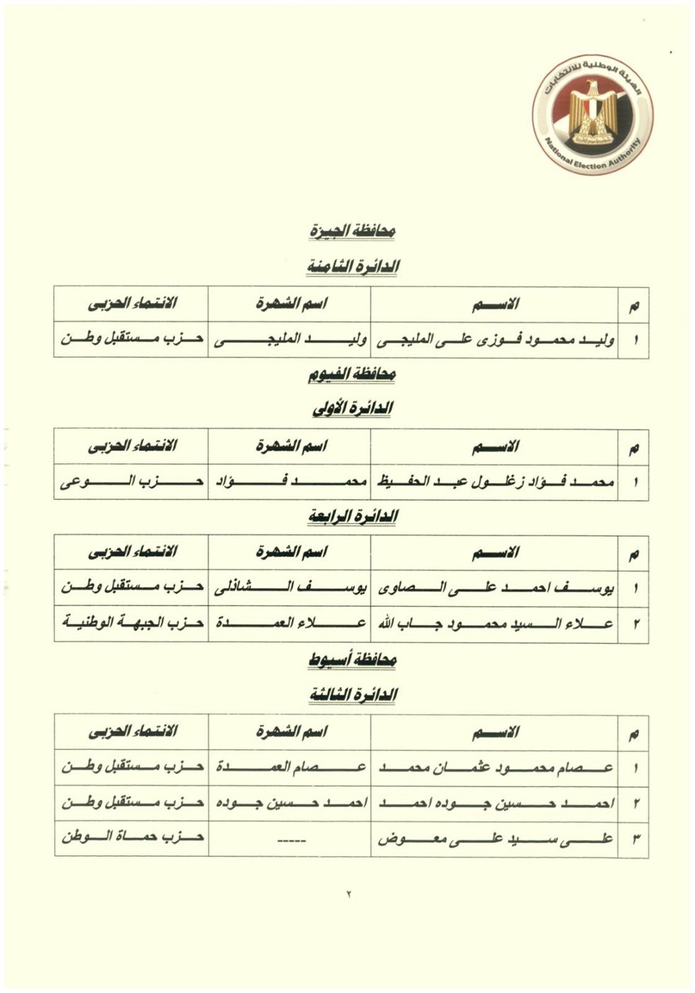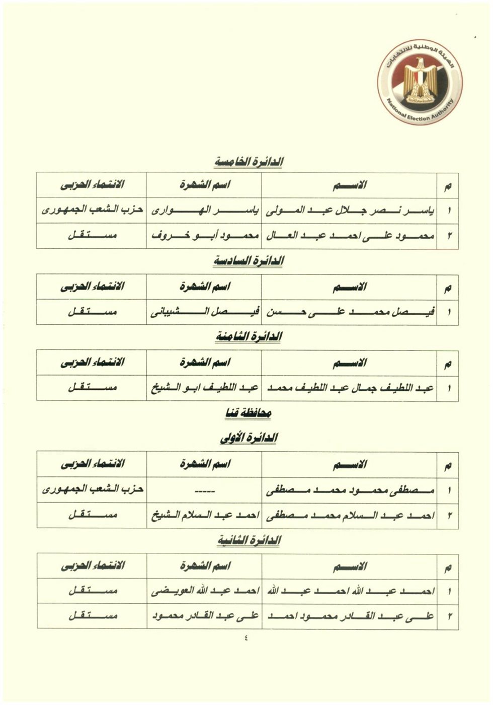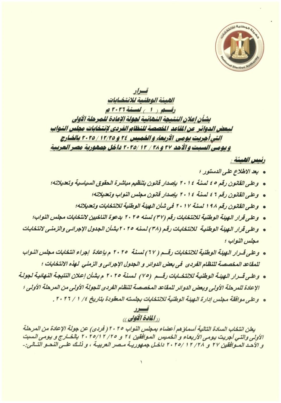 نتائج انتخابات جولة إعادة الدوائر الـ 19 الملغاة