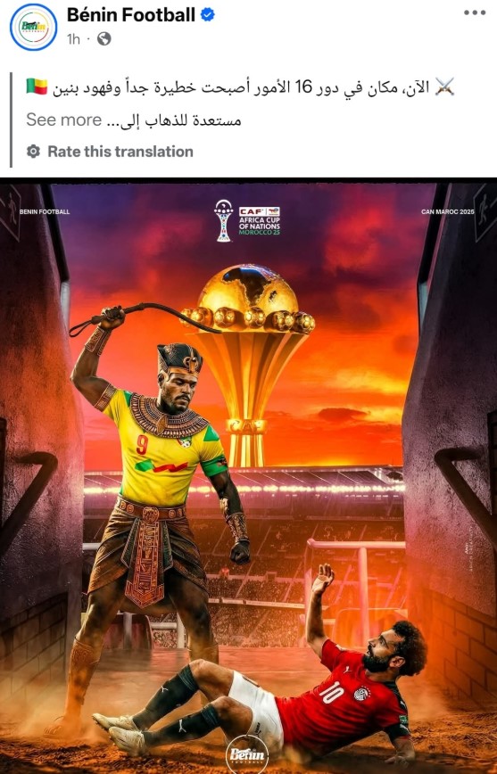 وجاءت الرسالة بعد انتشار صورة ساخرة على صفحة يزعم إنها لمنتخب بنين عبر فيسبوك، والتي أظهرت قائد الفريق يحمل كرباجًا بينما كان محمد صلاح ساقطًا على الأرض، في مشهد اعتبره البعض تهكمًا وإهانة لمنتخبنا المصري قبل المواجهة المرتقبة بين الفريقين.
