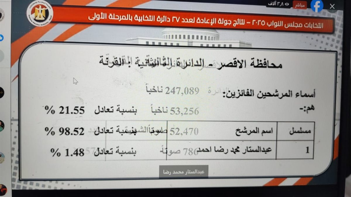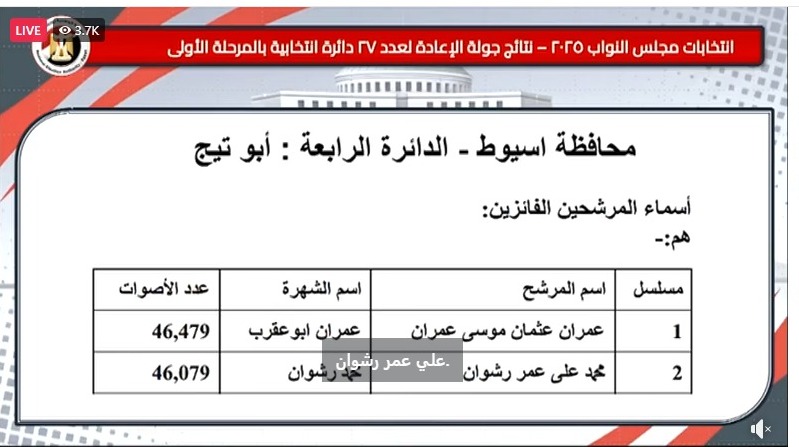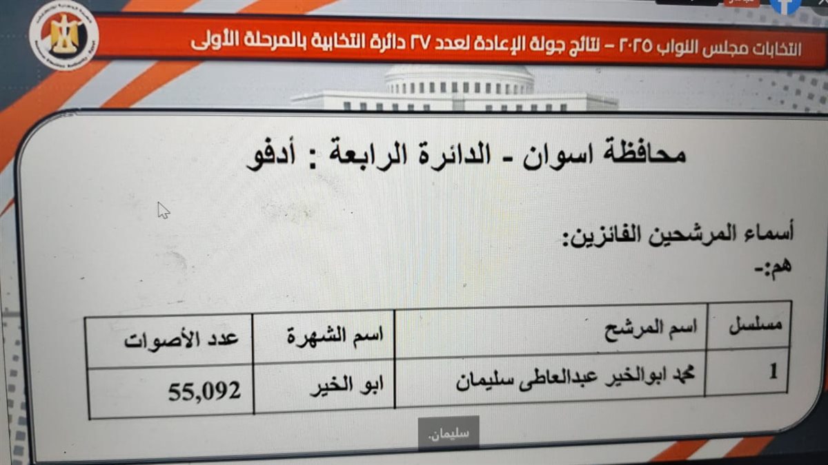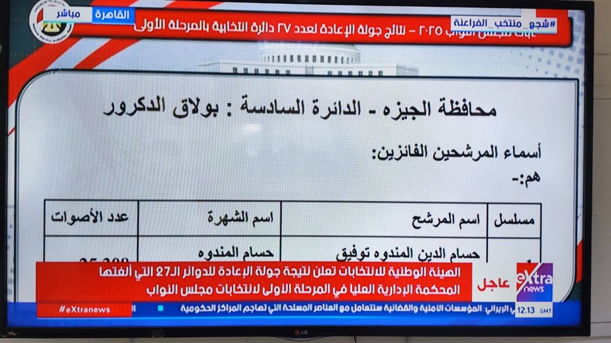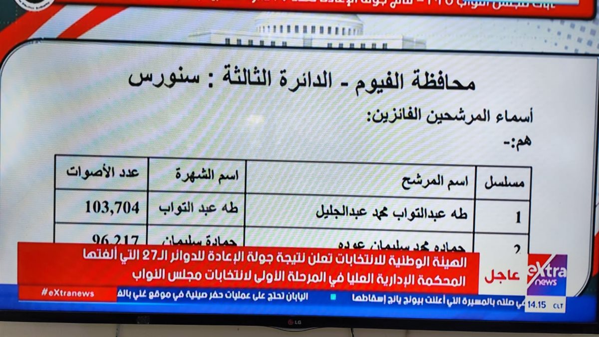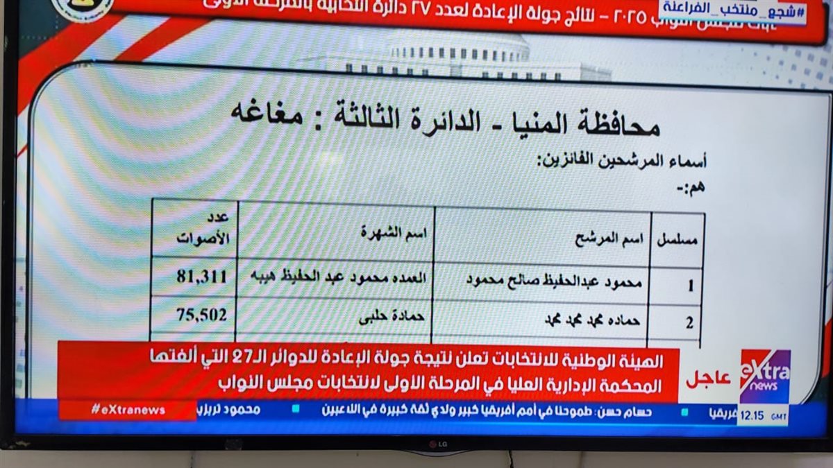 قامت الهيئة الوطنية للانتخابات منذ قليل بإعلان آخر نتائج الانتخابات البرلمانية في جولة إعادة الدوائر الـ 27 دائرة ملغاة بأحكام قضائية، بعدما جرى اعتماد النتائج النهائية للمرحلة الأولى من انتخابات مجلس النواب، وهو ما أسفر عن فوز 49 مرشحًا، ليصل عدد الأعضاء المنتخبين إلى 568 نائبًا، وبذلك يكتمل التشكيل المنتخب للمجلس.