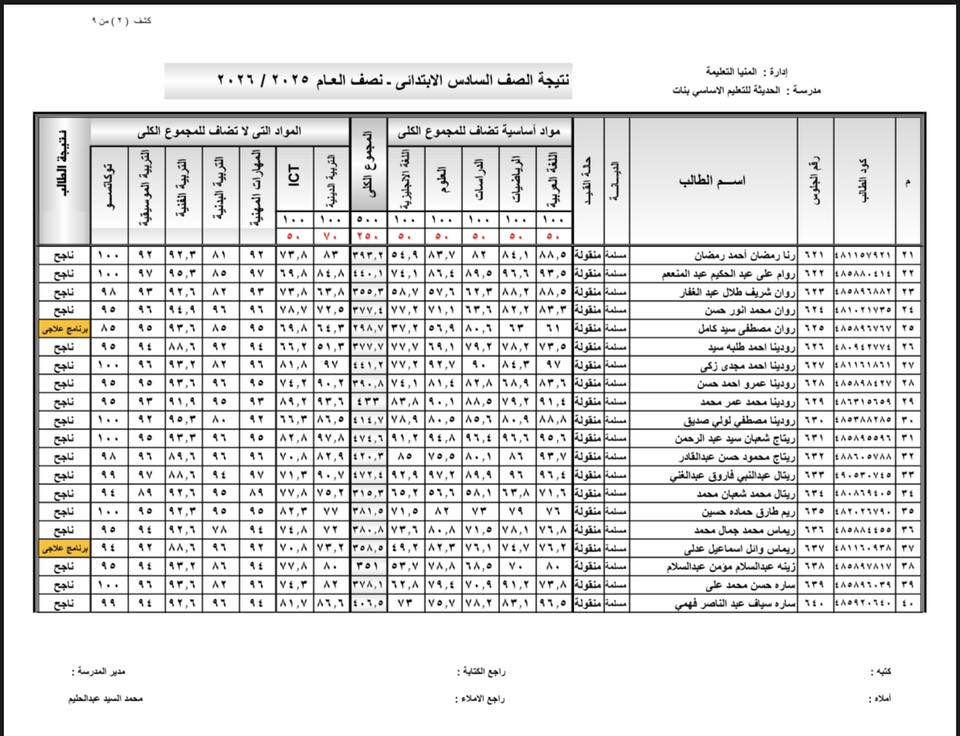 وننشر لكم في الصور المرفقة قوائم بنتائج الصف السادس الابتدائي في بعض المدارس التي أعلنت ظهروها عبر صفحاتها بالسوشيال ميديا