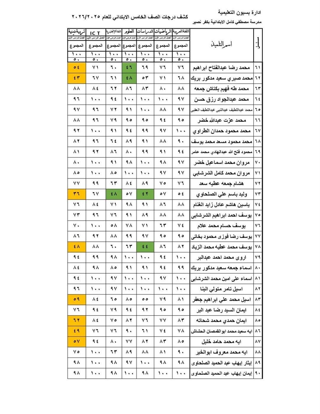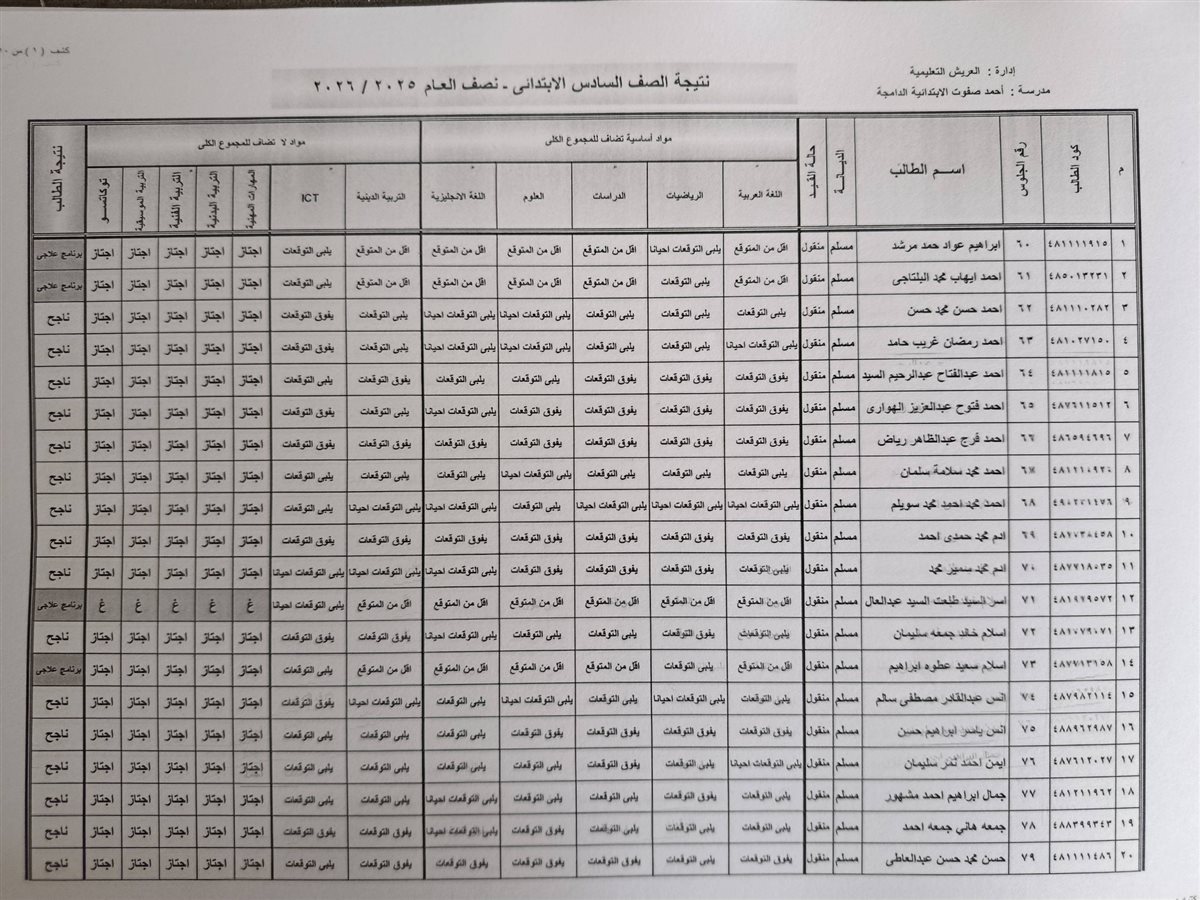 وخلال الساعات الماضية، بدأت عدد من المدارس الابتدائية في إتاحة نتائج صفوف النقل تدريجيًا، حيث شهدت الصفحات الرسمية لبعض المدارس على مواقع التواصل الاجتماعي نشر صور لقوائم نتائج الصف السادس الابتدائي متضمنة أرقام الجلوس وأسماء الطلاب.