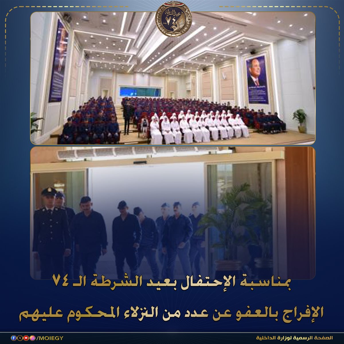 نشرت الصفحة الرسمية لوزارة الداخلية بمنصة فيسبوك، بيانا رسميا، كشفت فيه أن قطاع الحماية المجتمعية بوزارة الداخلية أوضح أنه تم الإفراج عن 2520 نزيلًا، بعد انطباق شروط العفو عليهم، وذلك تنفيذًا للقرار الجمهوري رقم 13 لسنة 2026 الصادر عن الرئيس عبد الفتاح السيسي، بالتزامن مع الاحتفال بالذكرى الرابعة والسبعين لعيد الشرطة.