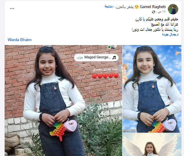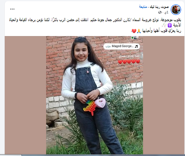 الرحيل المفاجئ للطفلة ترك صدمة كبيرة في نفوس أسرتها وأحبائها، وسط الدعاء لها بالراحة الأبدية في حضن الله ورجاء القيامة والحياة الأبدية.
