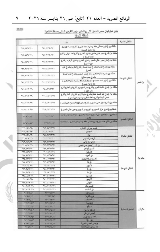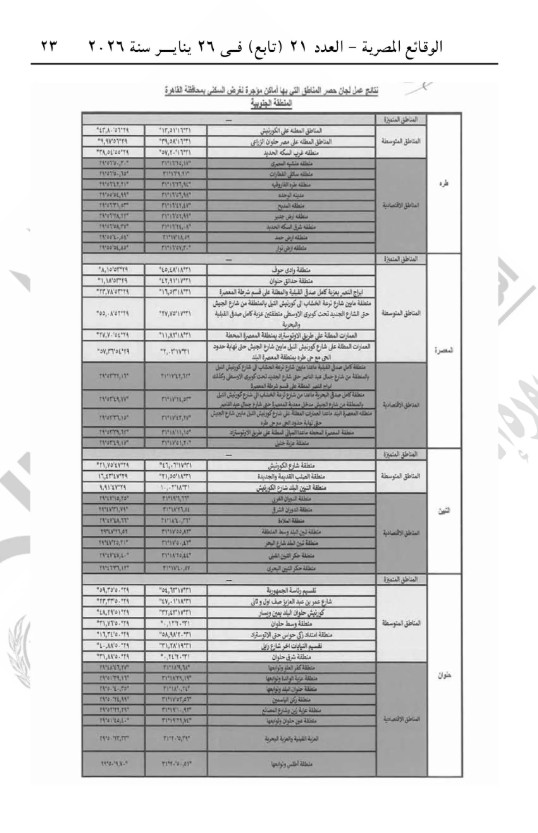 يتزايد اهتمام المواطنين خلال الفترة الحالية بقرارات المحافظات بشأن إعلان نتائج لجان الحصر بالمحافظات ، خاصة بعد اقتراب انتهاء مدة القانون والمقرر أن تنتهي يوم 5 فبراير المقبل، وفي الساعات الماضية وبعد طول انتظار، أصدرت محافظة القاهرة ومحافظة الغربية، قرارات لجان الحصر وتقسيم المناطق السكنية وتم نشر القرار في الجريدة الرسمية، ونوافيكم بأبرز التفاصيل في السطور التالية.