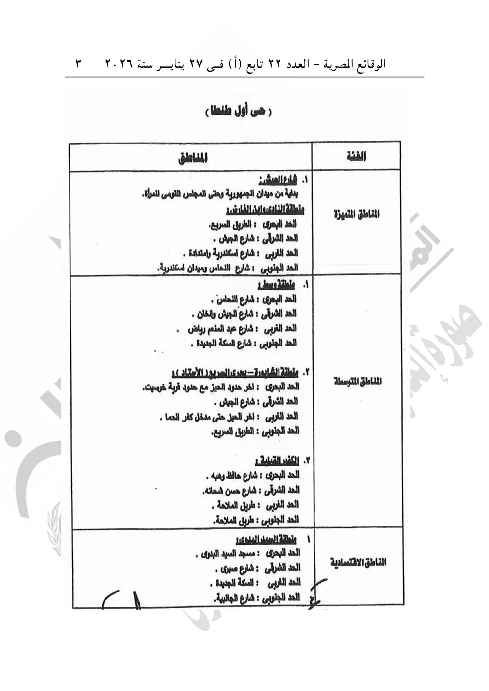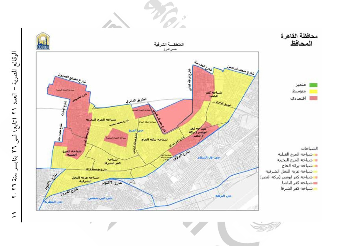 وبحسب القرار، تم تصنيف المناطق إلى مناطق متميزة، وتم تمييزها باللون الأخضر، ومناطق متوسطة باللون الأصفر، إلى جانب المناطق الاقتصادية التي تم تحديدها باللون الأحمر، وذلك تمهيدًا لتطبيق القواعد المنظمة للإيجار وفق هذا التقسيم، وننشر لكم القرار في المستندات المرفقة.