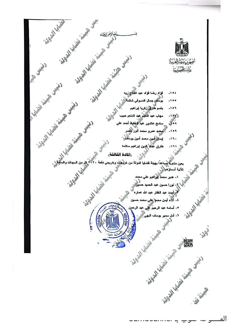 أسماء 161 مندوبا مساعدا بهيئة قضايا الدولة