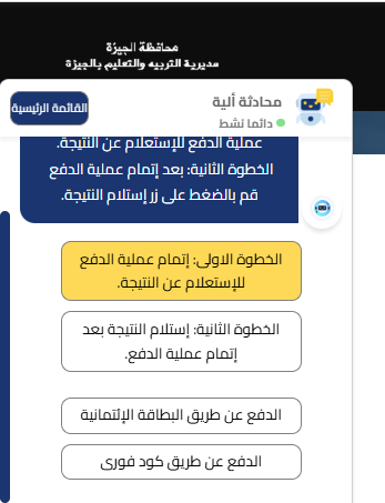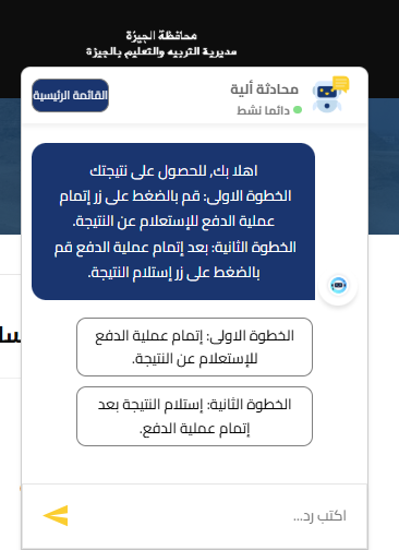 لم يختلف الوضع كثيرًا في محافظة الجيزة، حيث فوجئ الطلاب وأولياء الأمور بأن نتيجة الشهادة الإعدادية 2026 متاحة أيضًا عبر خدمة المحادثة الآلية بشرط إتمام عملية دفع مسبقة.