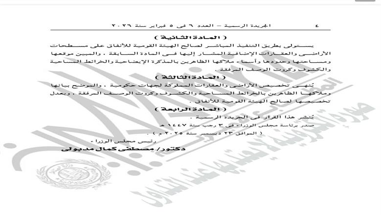أكدت المادة الرابعة على نشر القرار بالكامل في الجريدة الرسمية، لضمان سريان أحكامه رسميًا واعتباره نافذًا قانونيًا من تاريخ النشر. ويُعد هذا الإجراء خطوة رسمية لضمان اطلاع كافة الجهات المعنية والجمهور على التعديلات والإضافات المتعلقة بمشروع القطار الكهربائي.