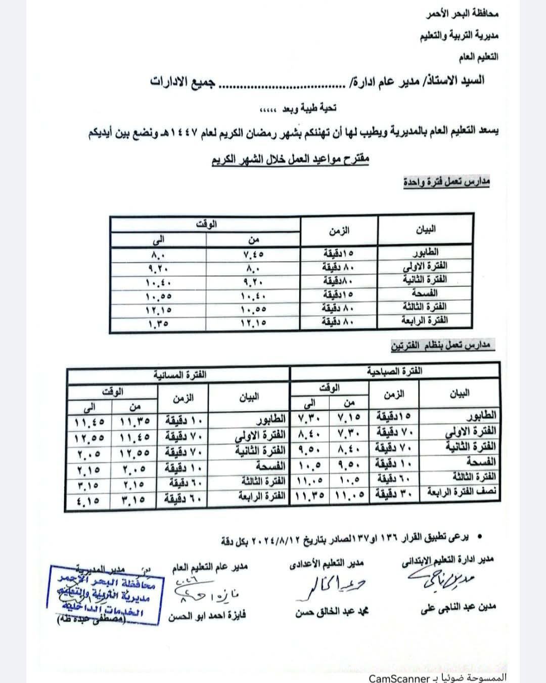 - تختلف المواعيد حسب كل محافظة وإدارة تعليمية.