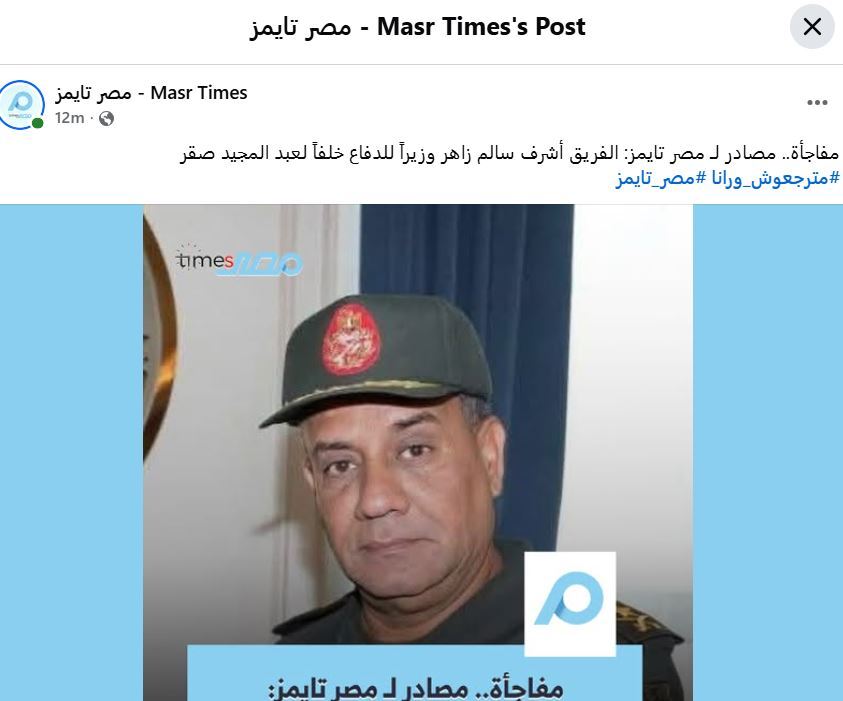 ووفقًا لتسريبات إعلامية، فإن الفريق أشرف سالم زاهر هو الاسم الأقرب لتولي منصب وزير الدفاع خلفًا للفريق أول عبد المجيد صقر، حيث يشغل حاليًا منصب رئيس الأكاديمية العسكرية المصرية. ويعد أشرف زاهر من القيادات العسكرية البارزة، ويشرف على تدريب وتأهيل الكوادر في الكليات الحربية، البحرية، الجوية، والدفاع الجوي بالعاصمة الإدارية الجديدة.