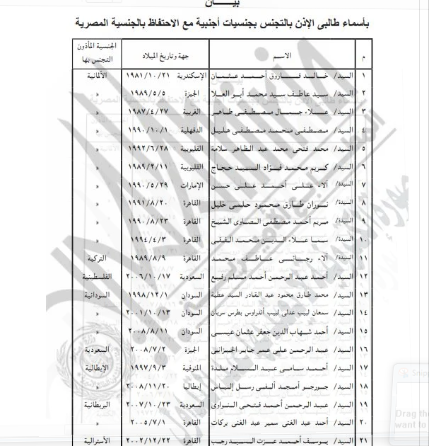 ويأتي صدور القرارين بناءً على طلبات تقدم بها المواطنون، وبعد مراجعة الجهات المختصة، حيث وافقت الداخلية على منحهم الإذن القانوني اللازم لاكتساب جنسية أخرى دون فقدان الجنسية المصرية.