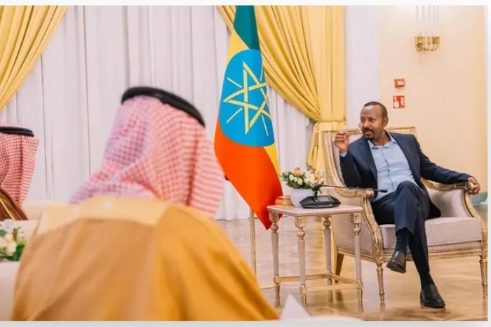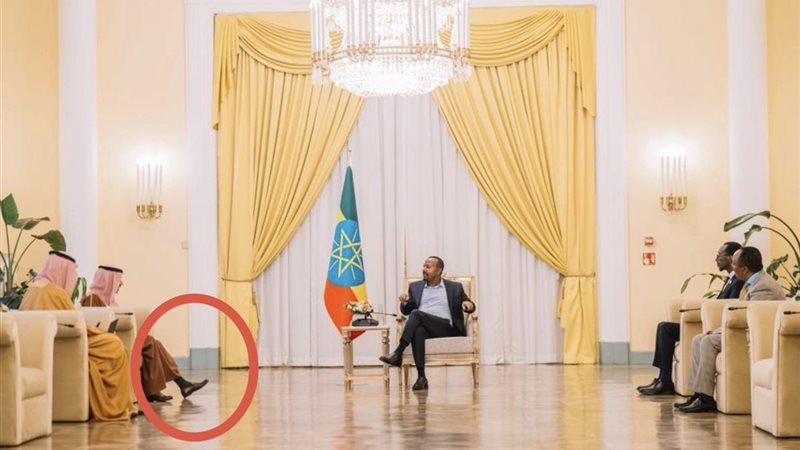 غضب واسع بين السعوديين بسبب وضعية جلوس رئيس وزراء إثيوبيا أمام وزير الخارجية السعودي
