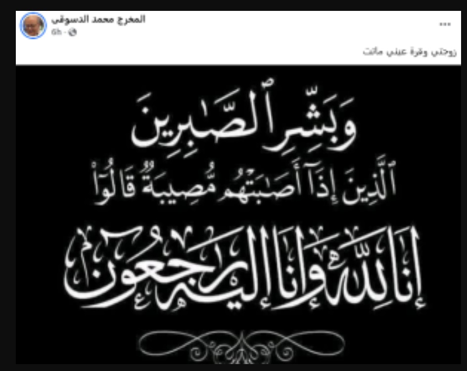 وفاة زوجة محمد الدسوقي أعلنها المخرج بنفسه عبر حسابه الرسمي على موقع فيس بوك، حيث كتب في منشور مقتضب ومؤلم:
